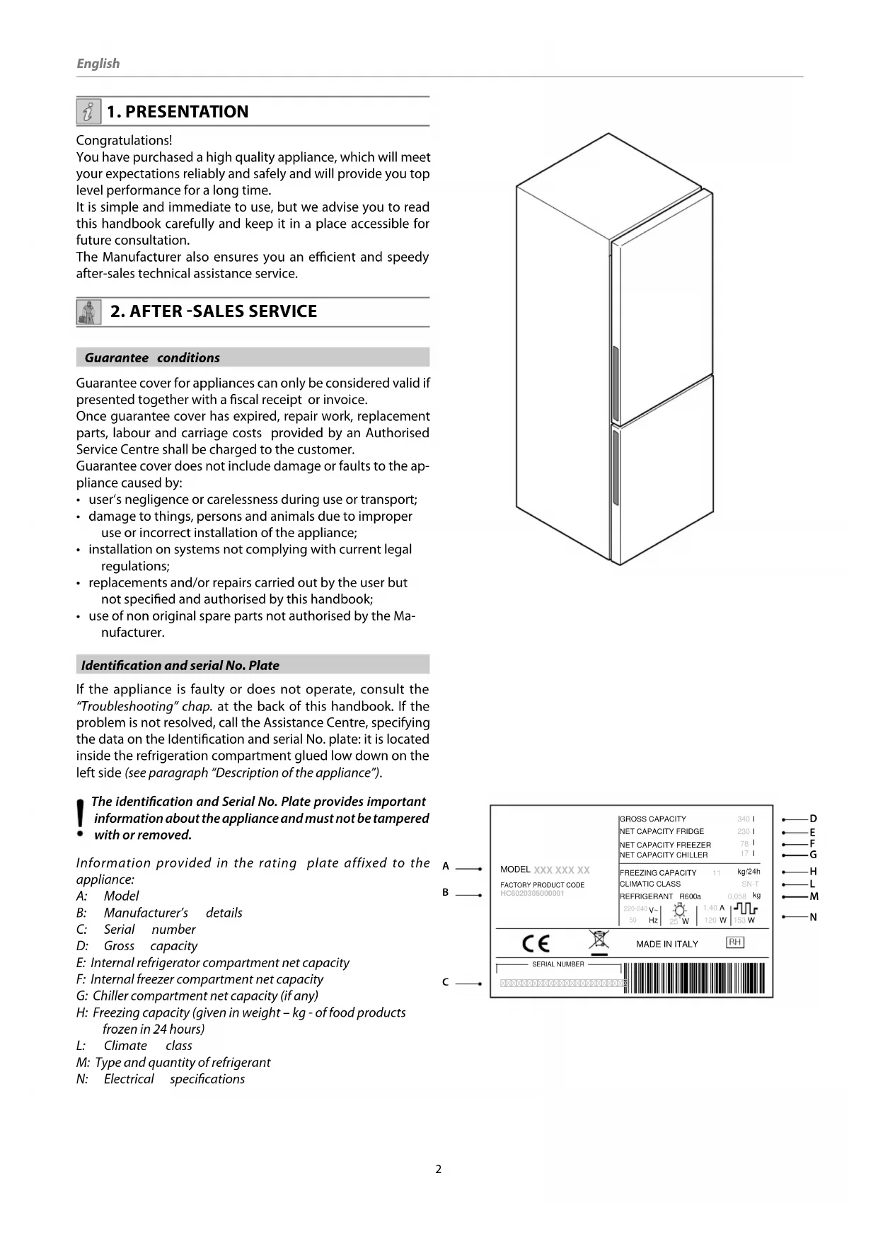 3. SPECIFICATIONS OF THE APPLIANCE A L B H K D E C F G I J MODEL AFD 631 CS FACTORY PRODUCT CODEHC6020305000001SERIAL NUMBER153 W 120