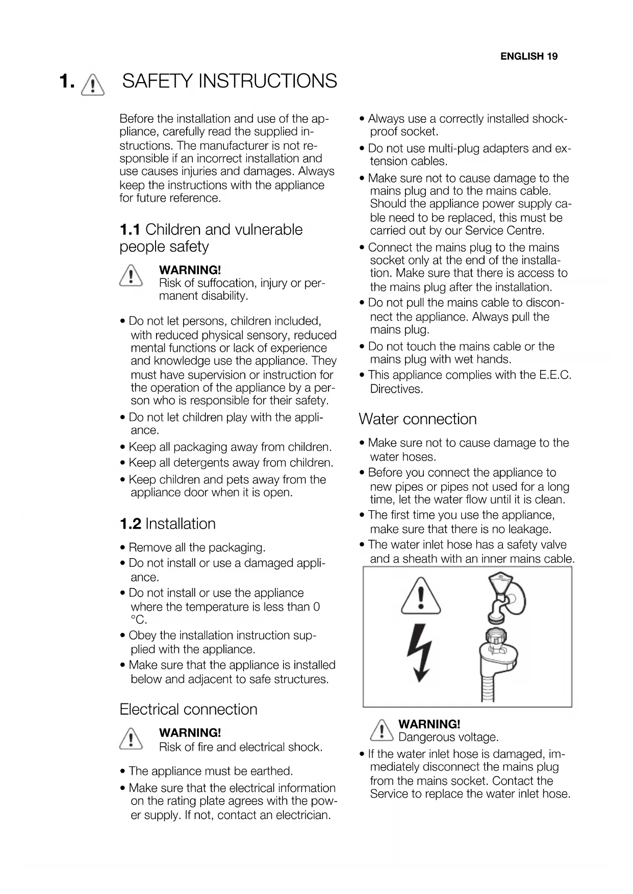 SAFETY INSTRUCTIONS Before the installation and use of the ap-