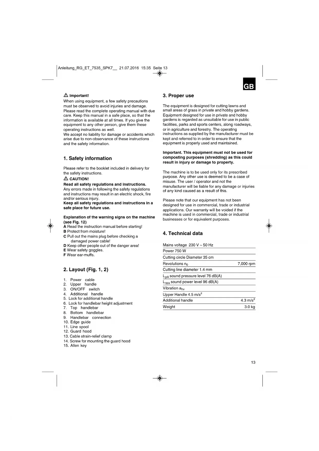 Download the instructions for your Coupe-herbe in PDF format for free! Find your manual RGET 7535 - EINHELL and take your electronic device back in hand. On this page are published all the documents necessary for the use of your device. RGET 7535 by EINHELL.