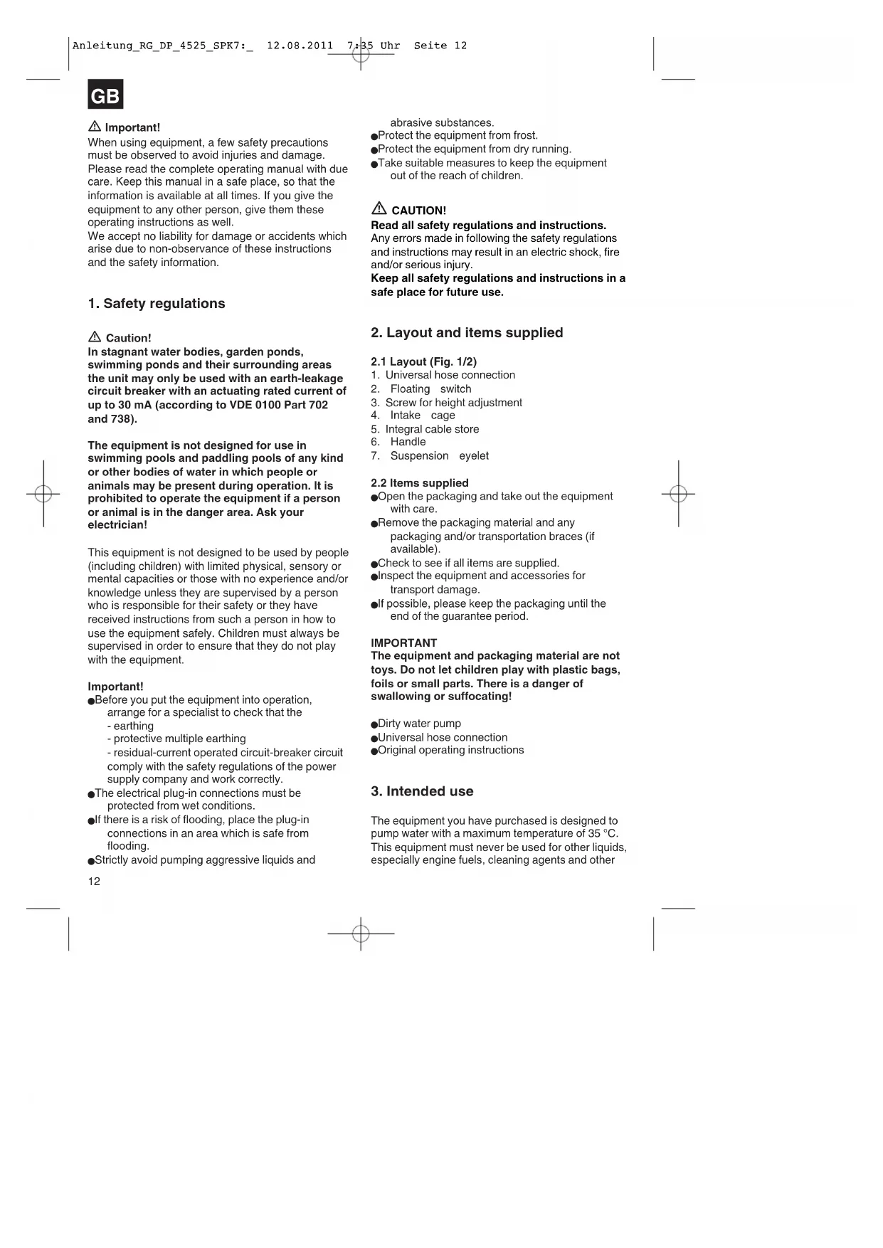 GB Anleitung_RG_DP_4525_SPK7:_ 12.08.2011 7:35 Uhr Seite 11 Important!
