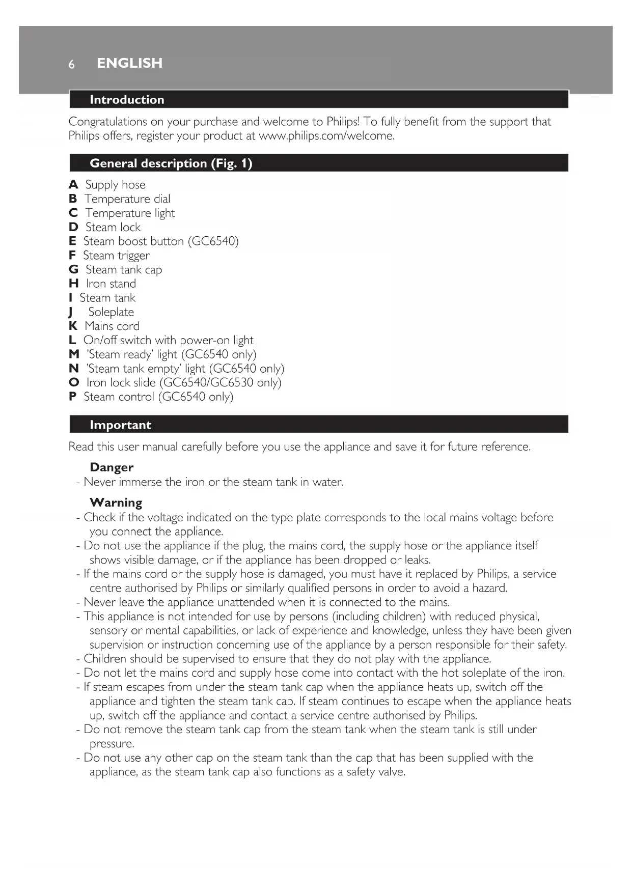 Download the instructions for your Iron in PDF format for free! Find your manual CompactCare GC6540 - PHILIPS and take your electronic device back in hand. On this page are published all the documents necessary for the use of your device. CompactCare GC6540 by PHILIPS.