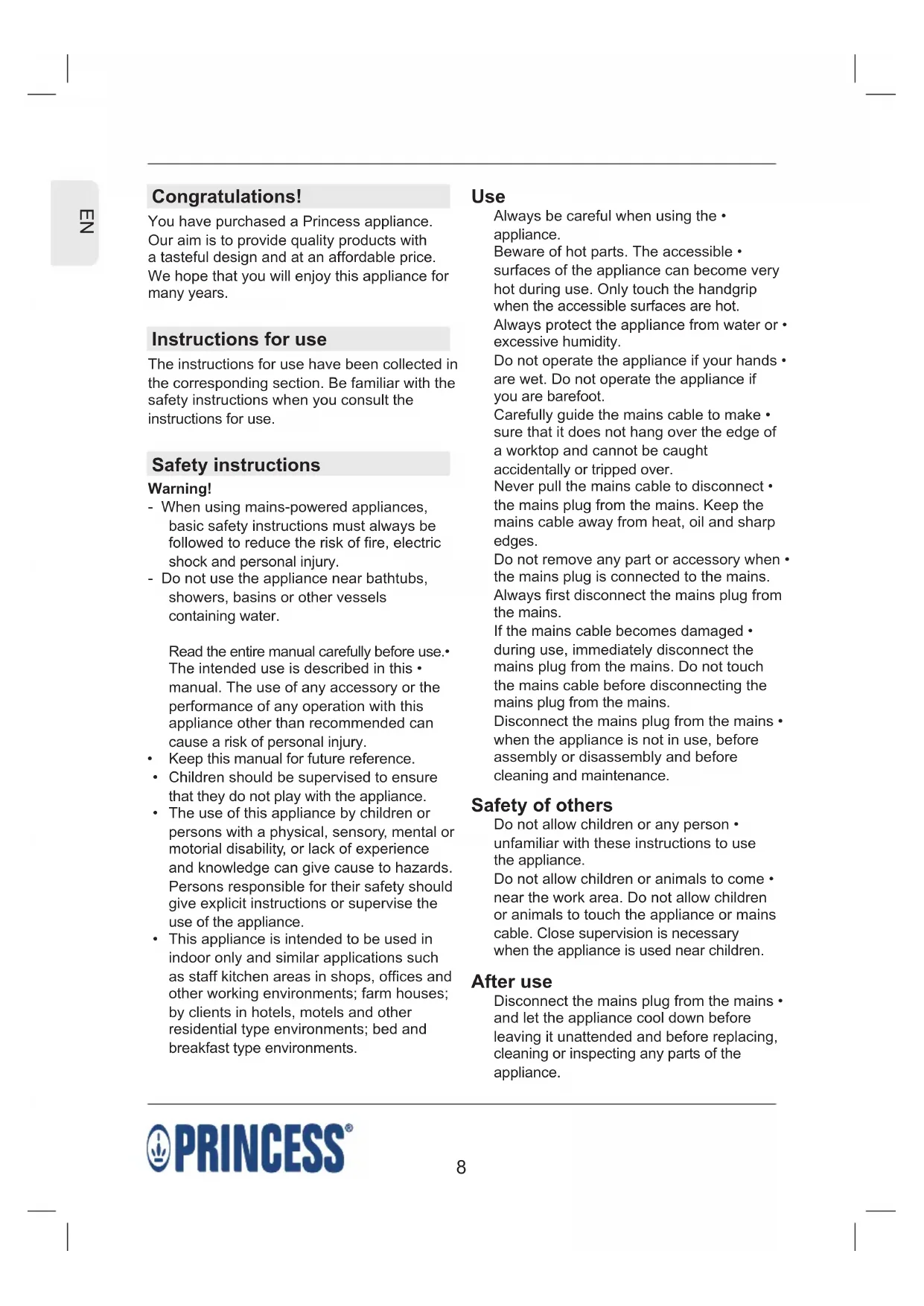 USER MANUAL 232614 PRINCESS