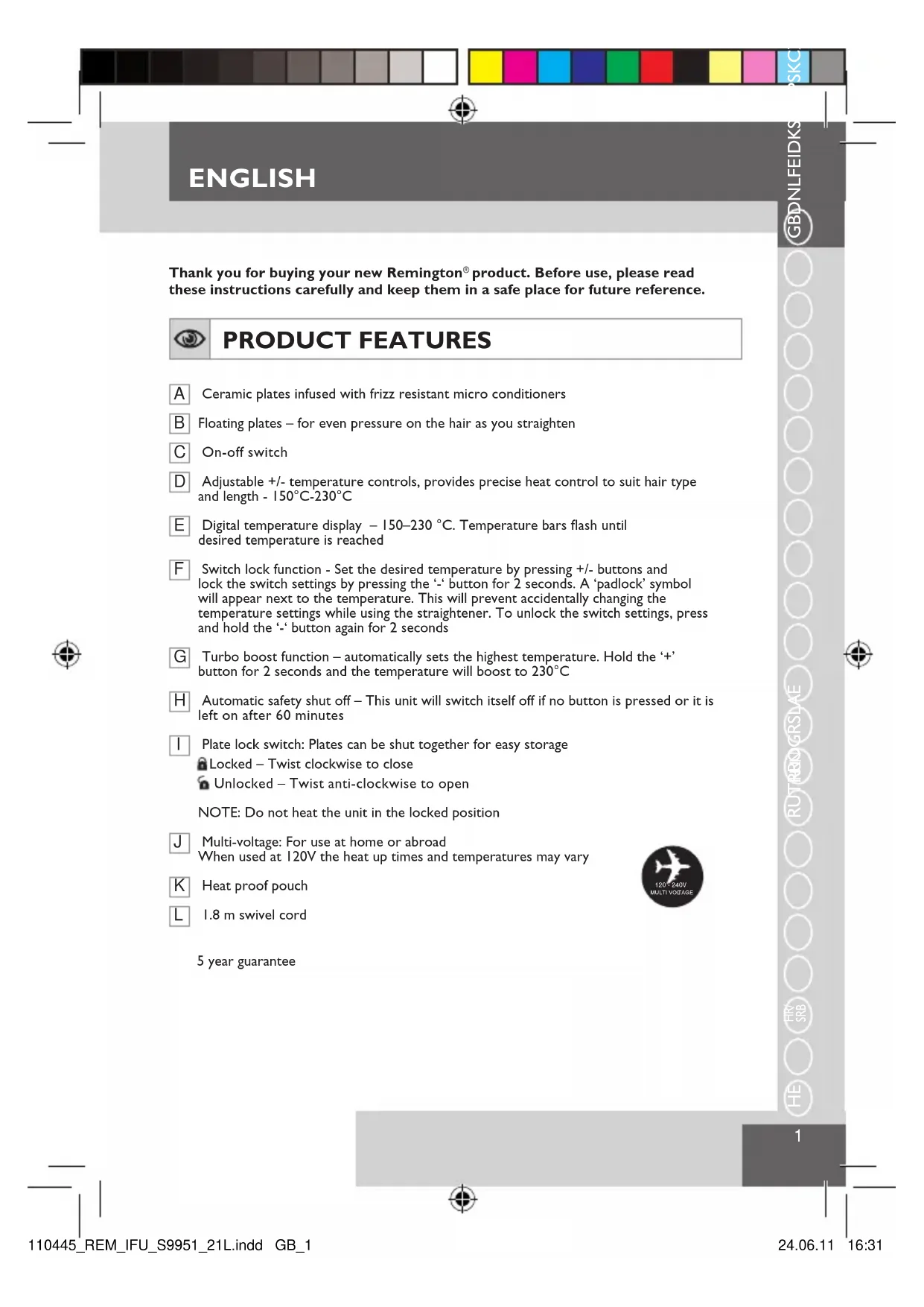 ENGLISH 120 - 240VMULTI VOLTAGE HE GB 110445_REM_IFU_S9951_21L.indd GB_1 24.06.11 16:31ENGLISH