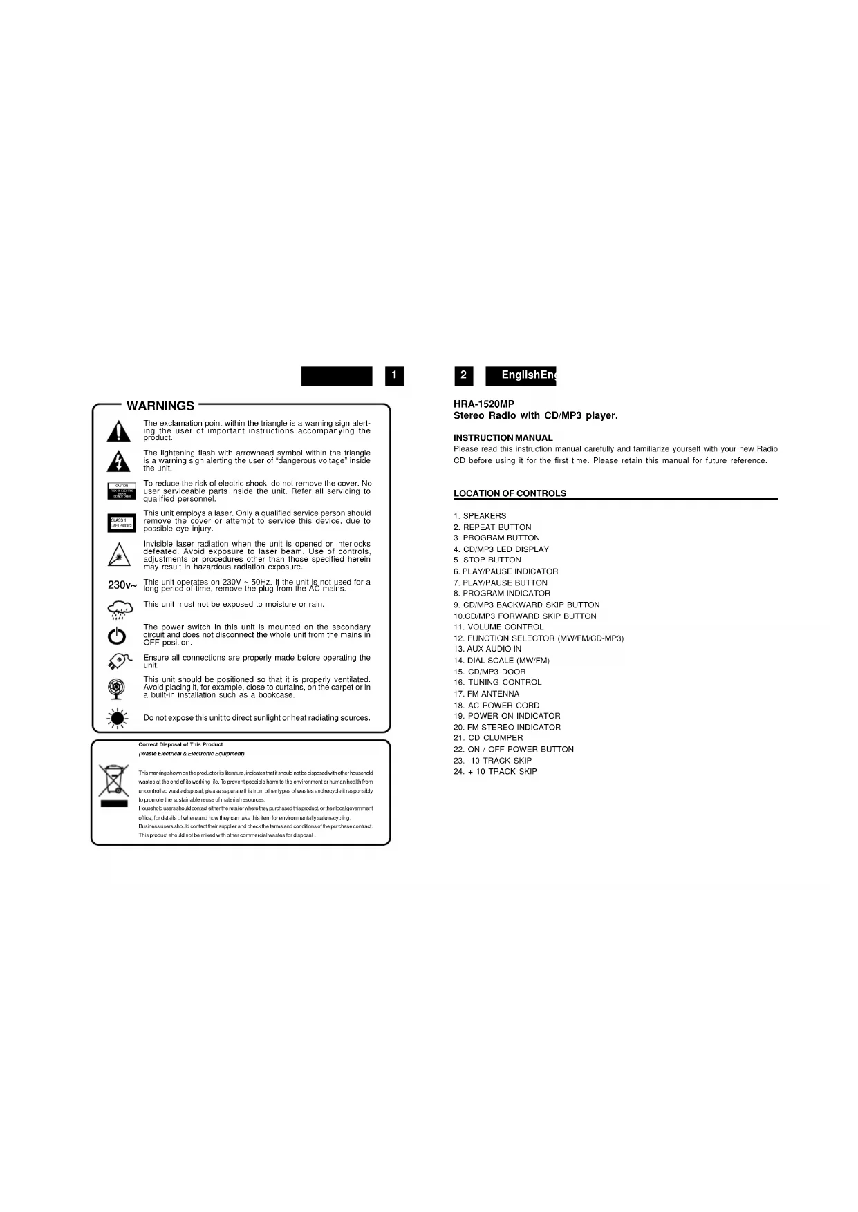 HRA1520MP - Cd player/recorder ROADSTAR - Free user manual and instructions