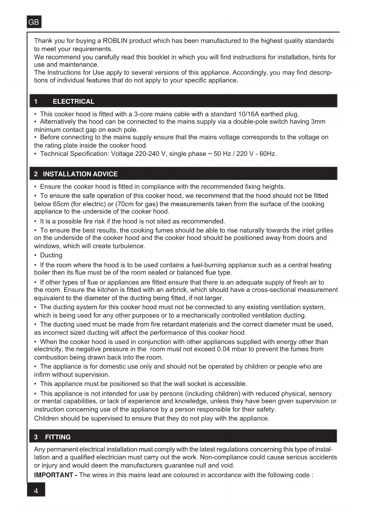 GB Thank you for buying a ROBLIN product which has been manufactured to the highest quality standards