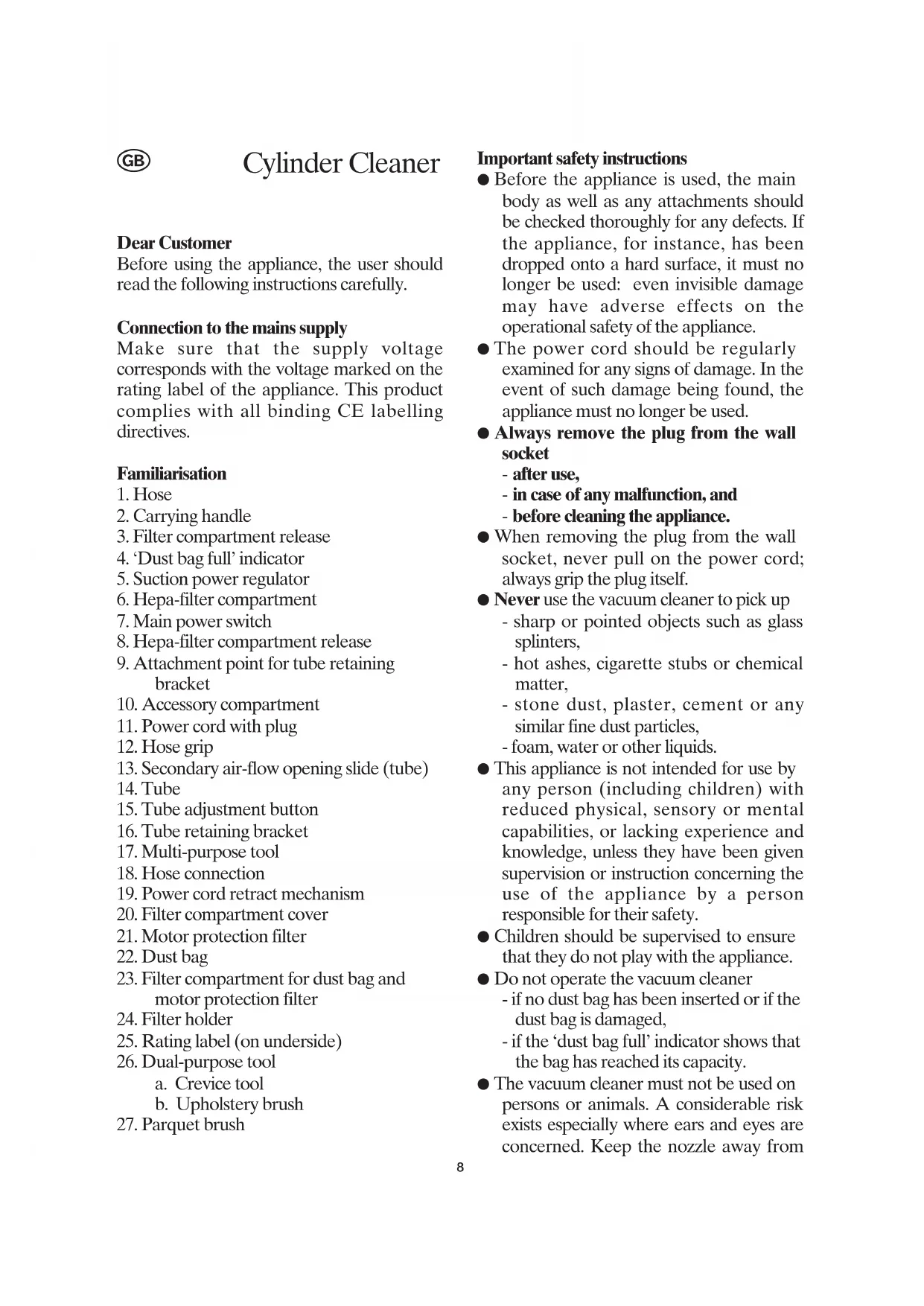 BR 7943 - Aspirateur SEVERIN - Free user manual and instructions