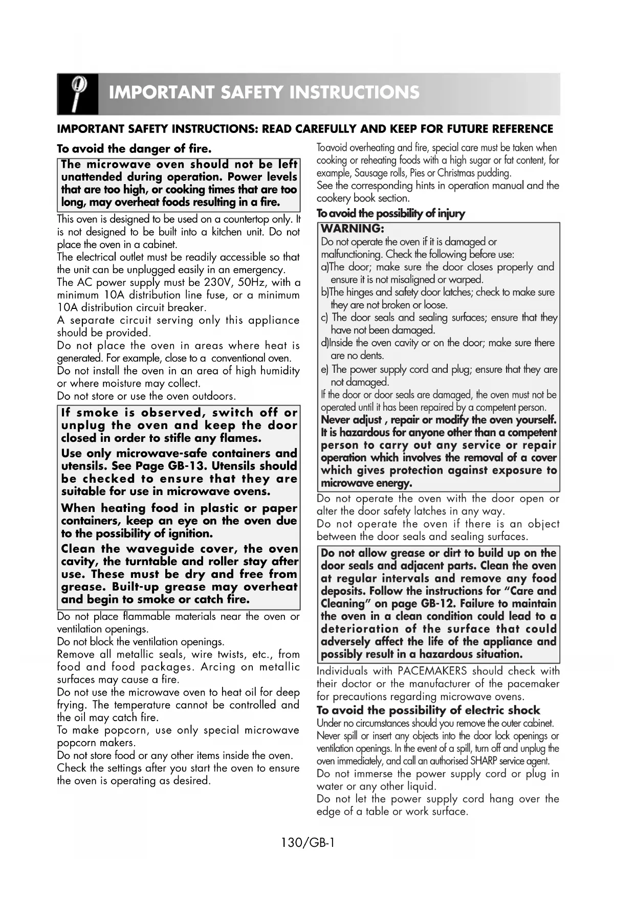 Important: There may be a serious risk to health if this operation manual is not followed or if the oven is modified so that it operates with