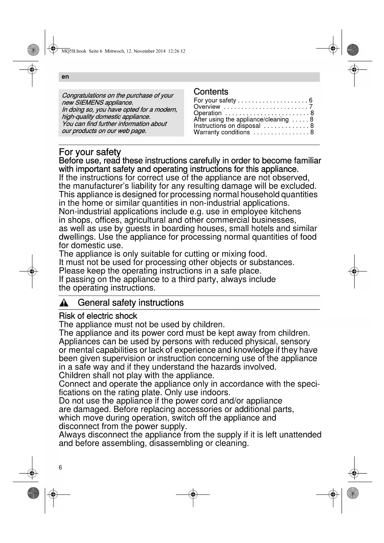 Download the instructions for your Blender in PDF format for free! Find your manual MQ5B150 - SIEMENS and take your electronic device back in hand. On this page are published all the documents necessary for the use of your device. MQ5B150 by SIEMENS.