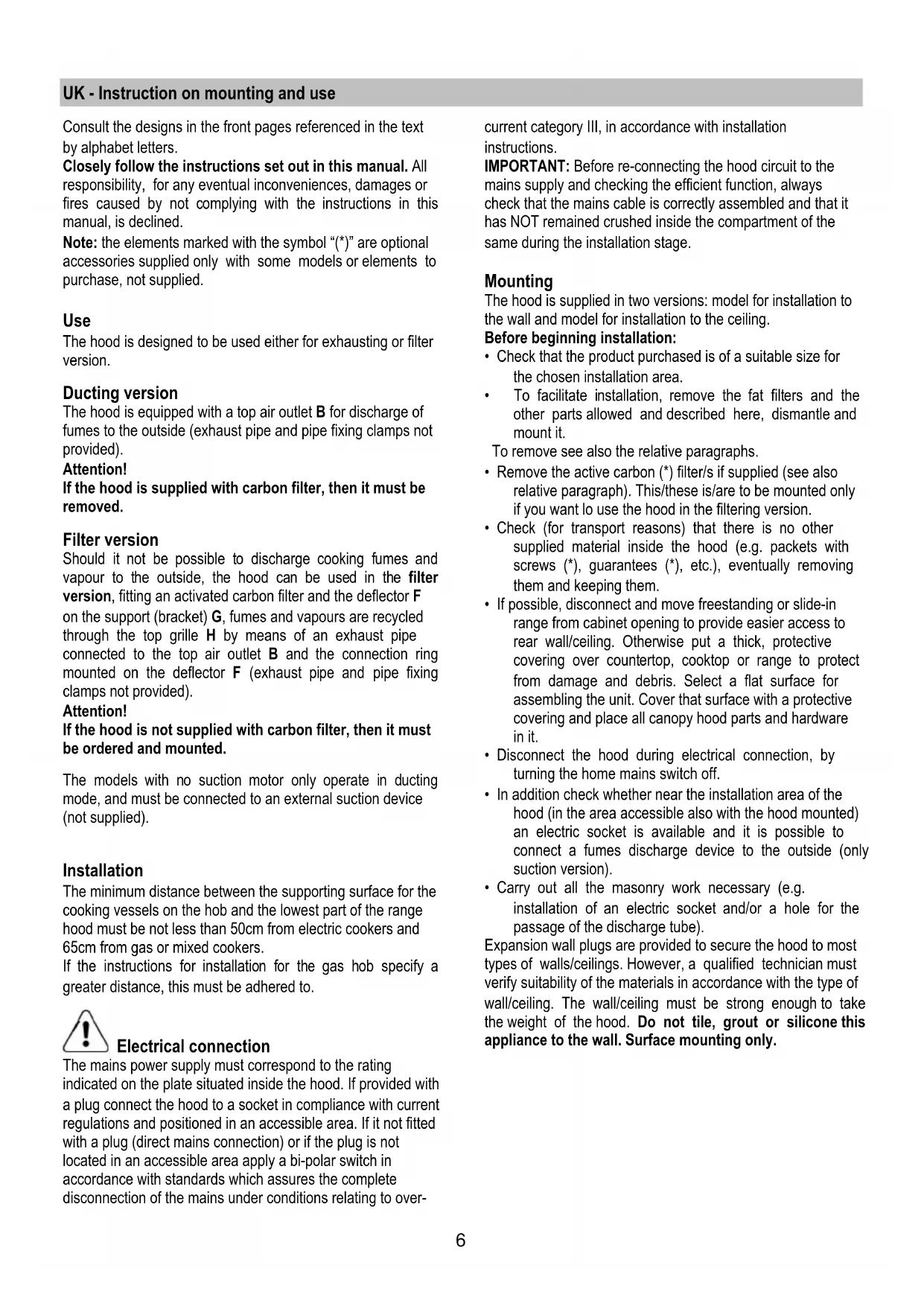 If the hood is supplied with carbon filter, then it must be