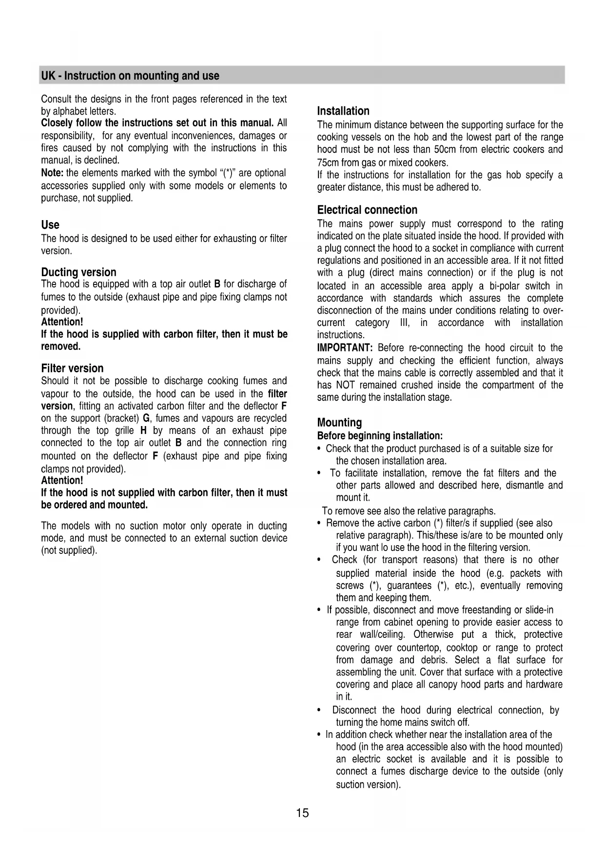 fumes to the outside (exhaust pipe and pipe fixing clamps not