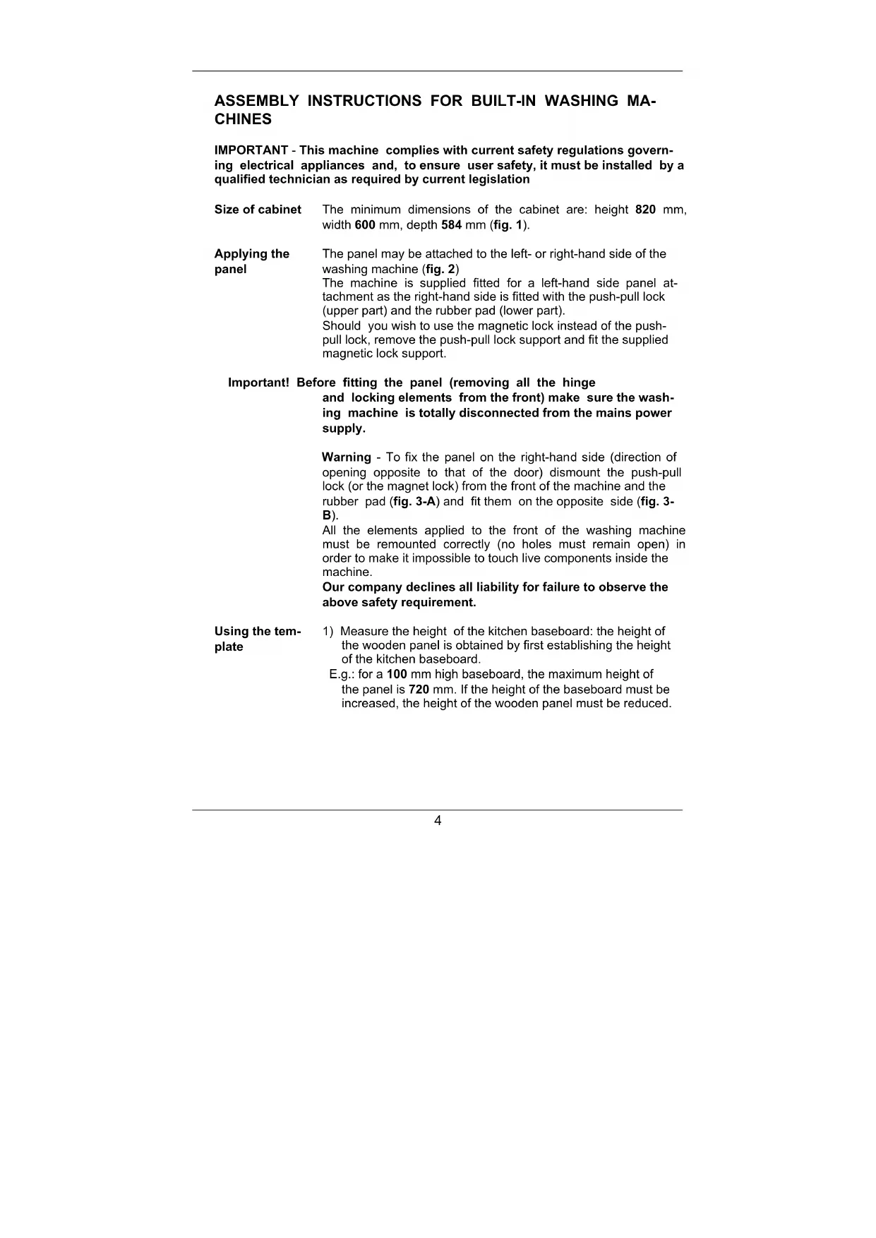 ASSEMBLY INSTRUCTIONS FOR BUILT-IN WASHING MA-
