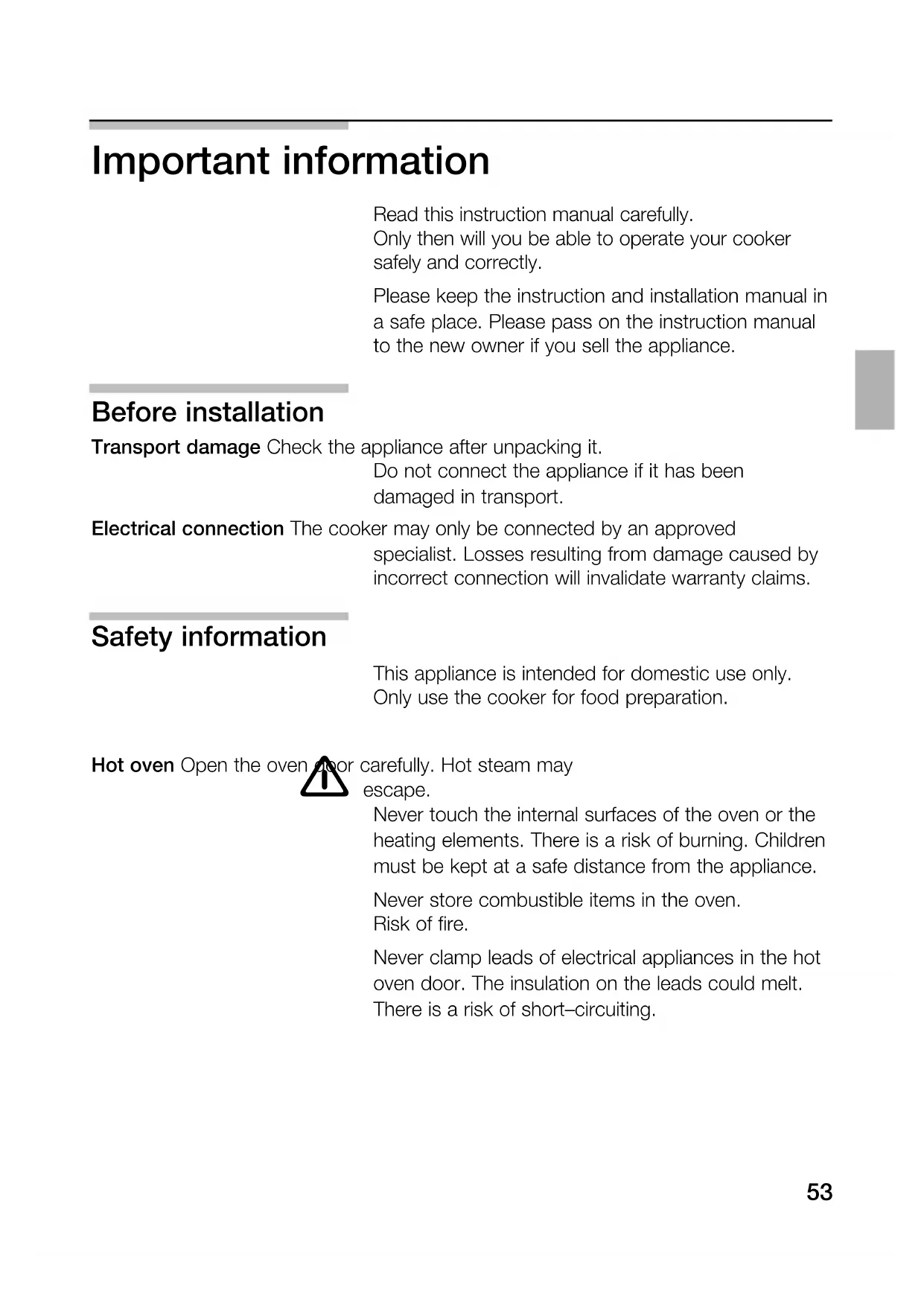 Detaching the oven door The oven door can be easily detached.