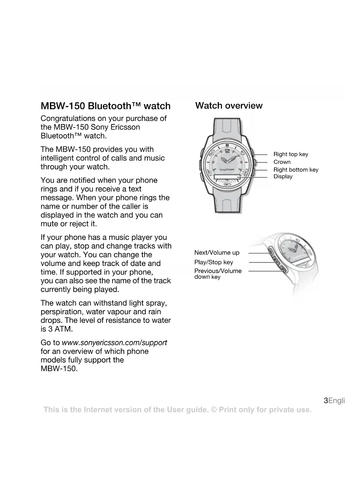 MBW150 Classic Edition - Montre SONY - Free user manual and instructions