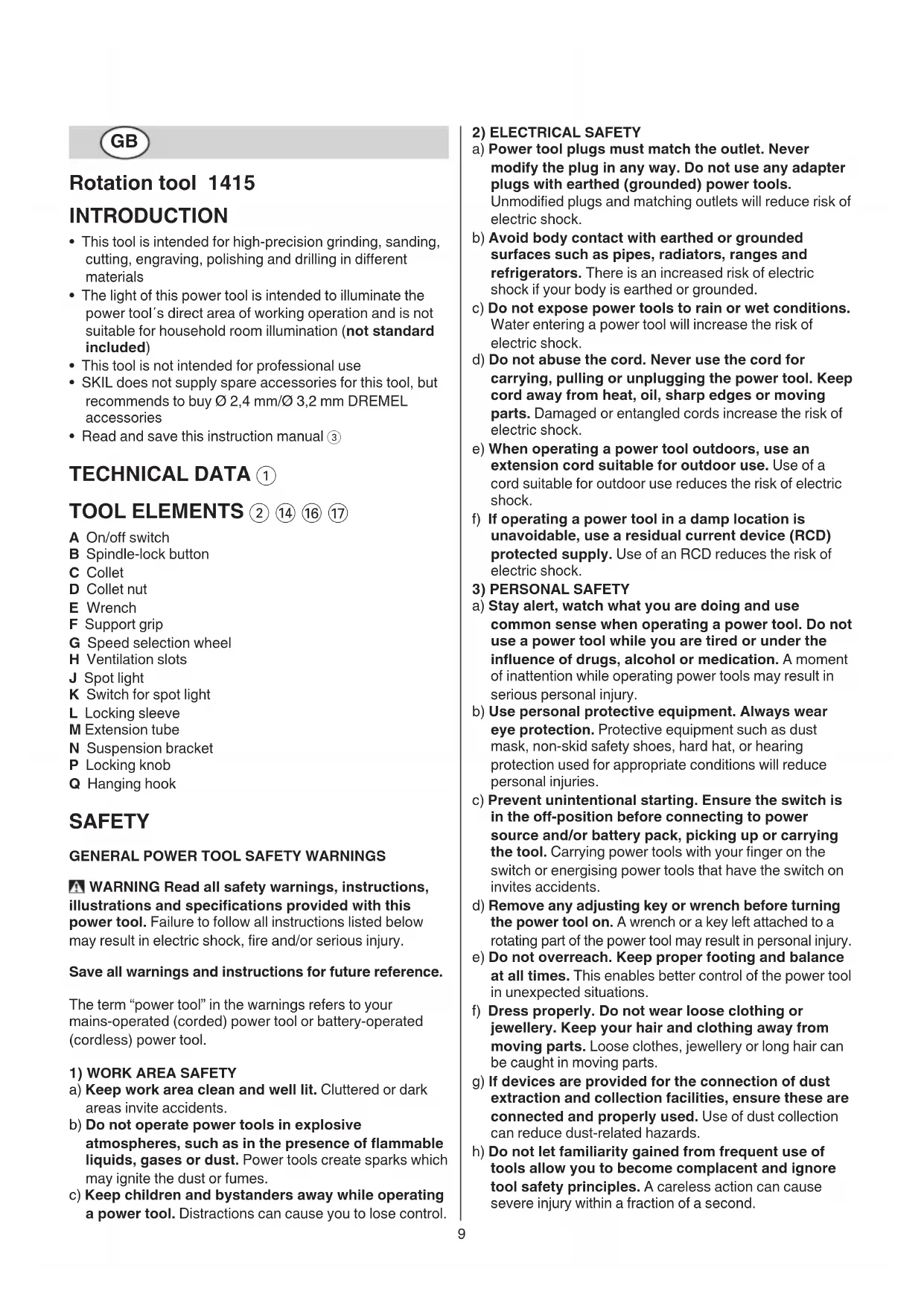 USER MANUAL 1415 AD SKIL