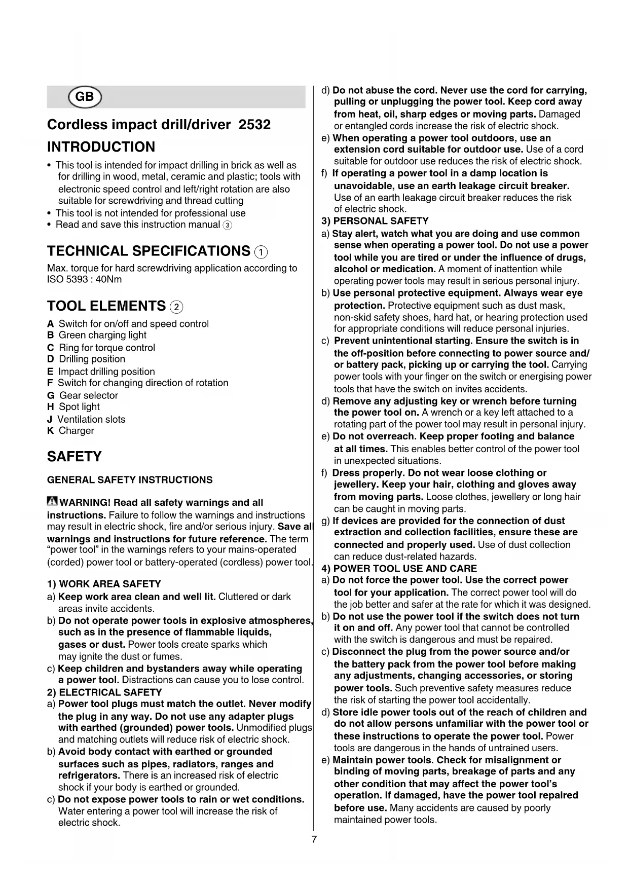 USER MANUAL 2532 AA SKIL