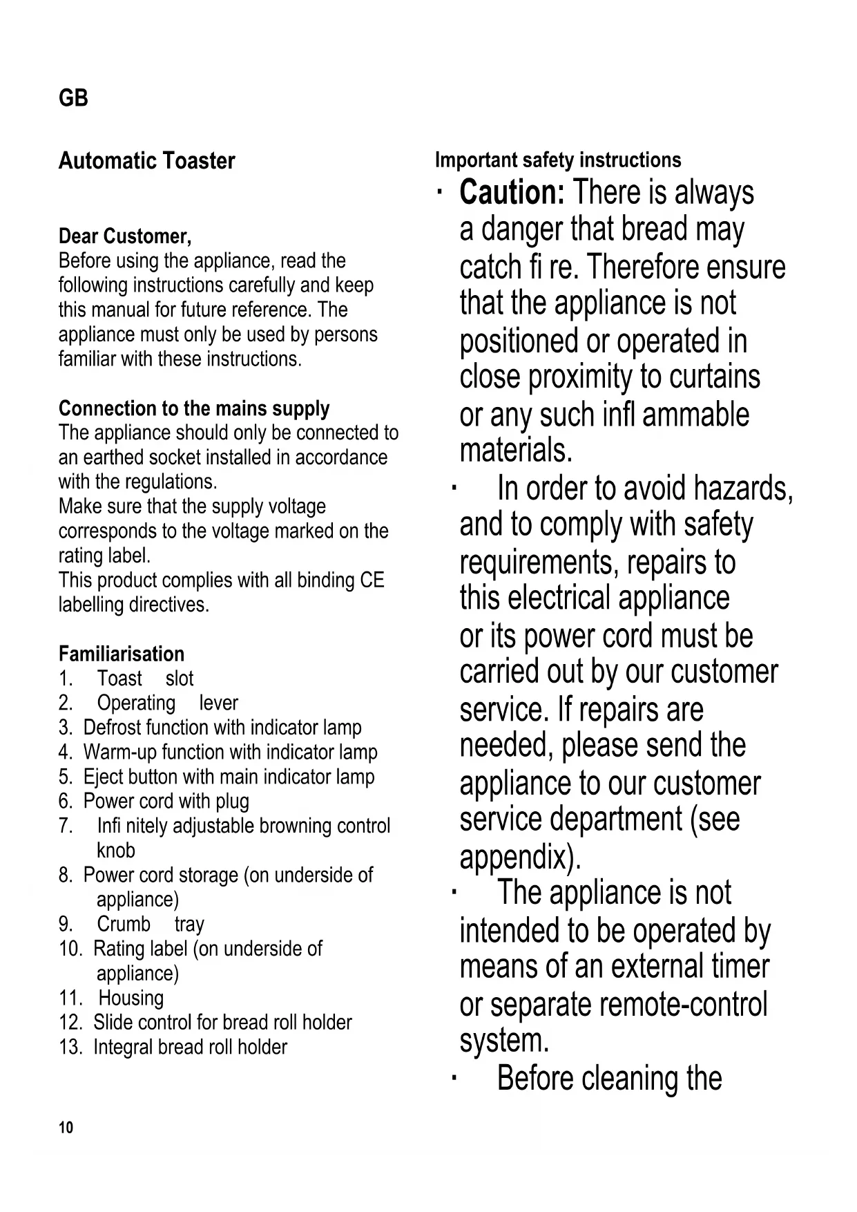 AT 2509 - Grille-pain SEVERIN - Free user manual and instructions