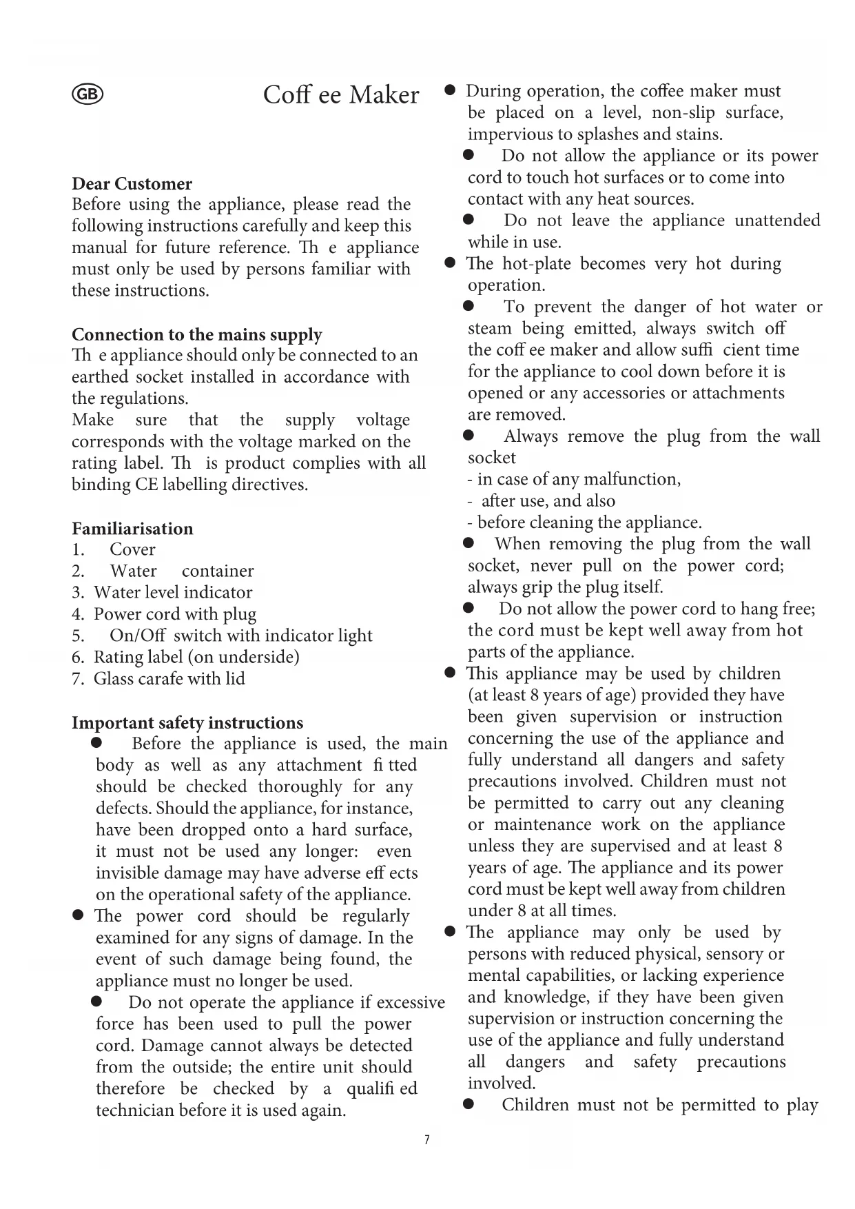 carafe by leaving it standing on the hot-plate.