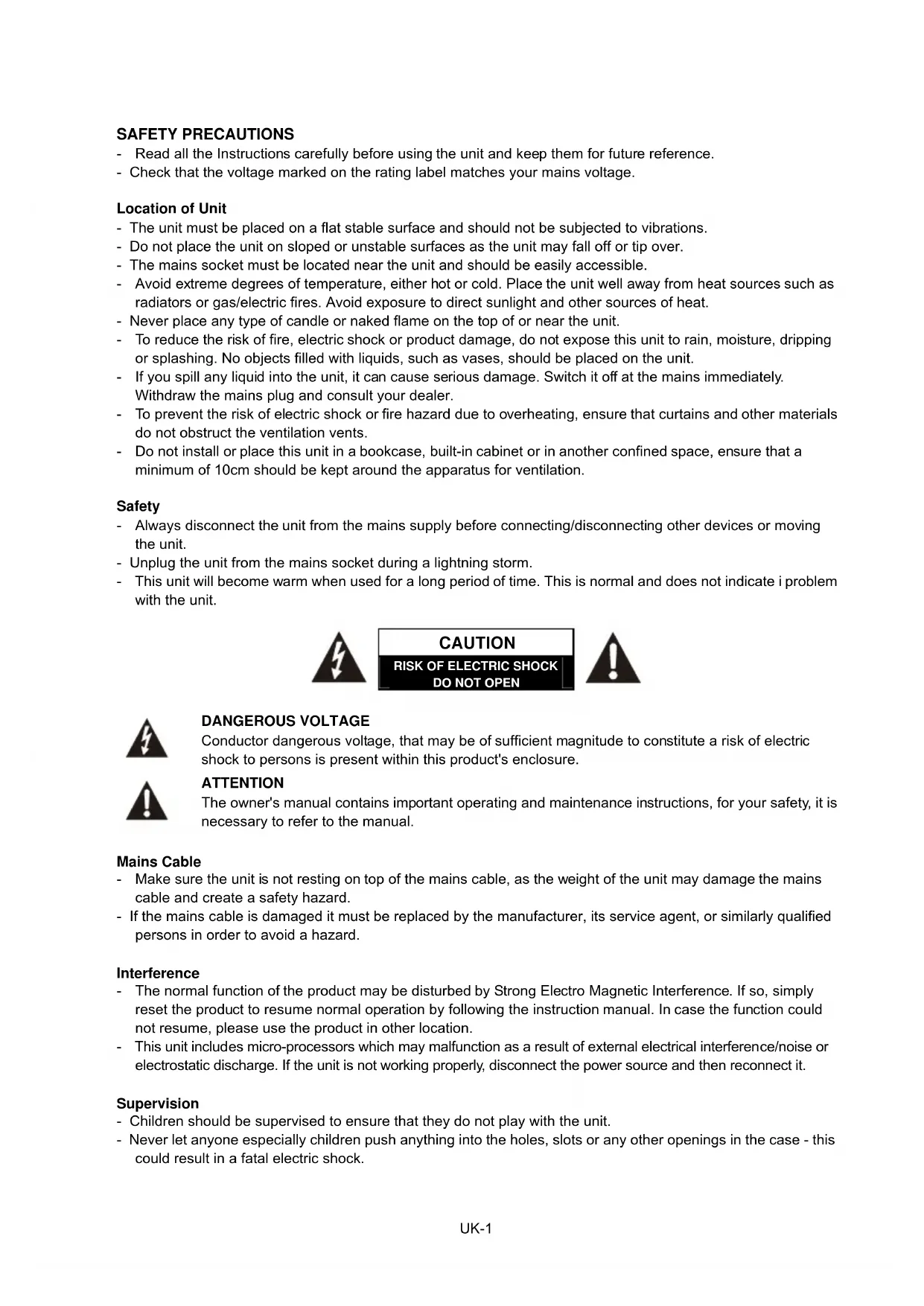 - Ensure to unplug the unit from the mains socket before cleaning.