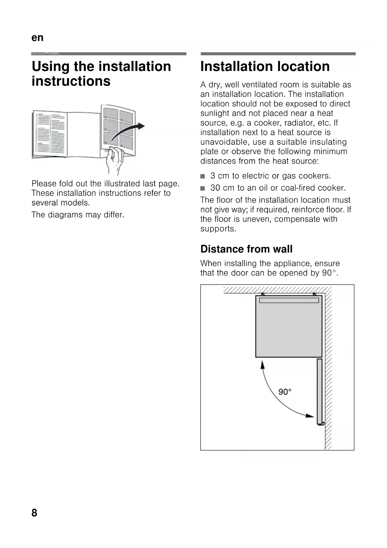 that the door can be opened by 90°.en