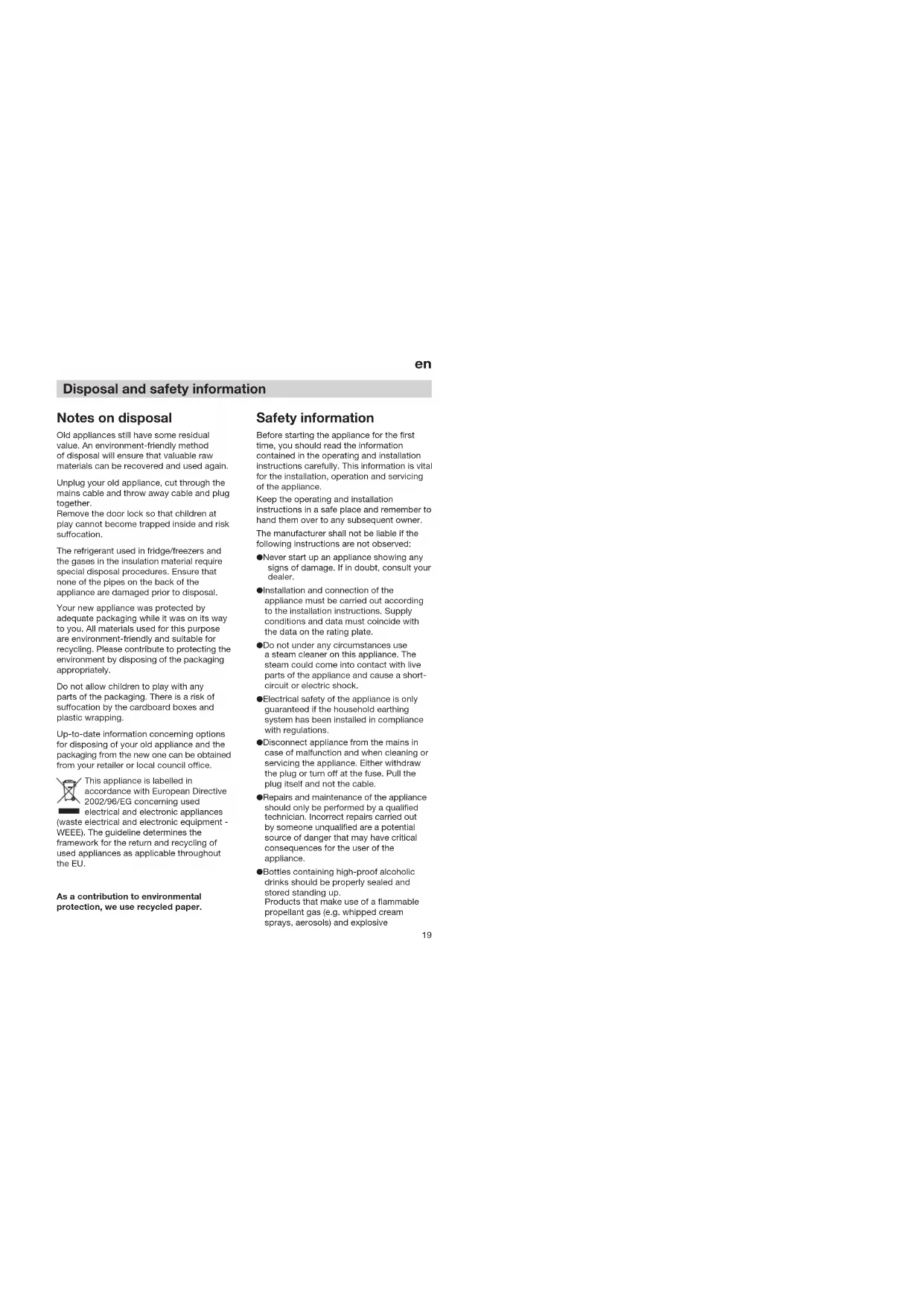 Download the instructions for your Fridge in PDF format for free! Find your manual KG36U199 - SIEMENS and take your electronic device back in hand. On this page are published all the documents necessary for the use of your device. KG36U199 by SIEMENS.