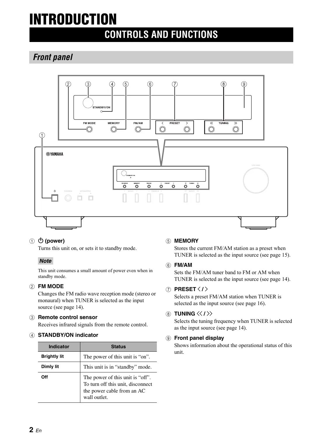 TUNER is selected as the input source (see page 15). 6 FM/AM Sets the FM/AM tuner band to FM or AM when TUNER is selected as the input source (see page 14).