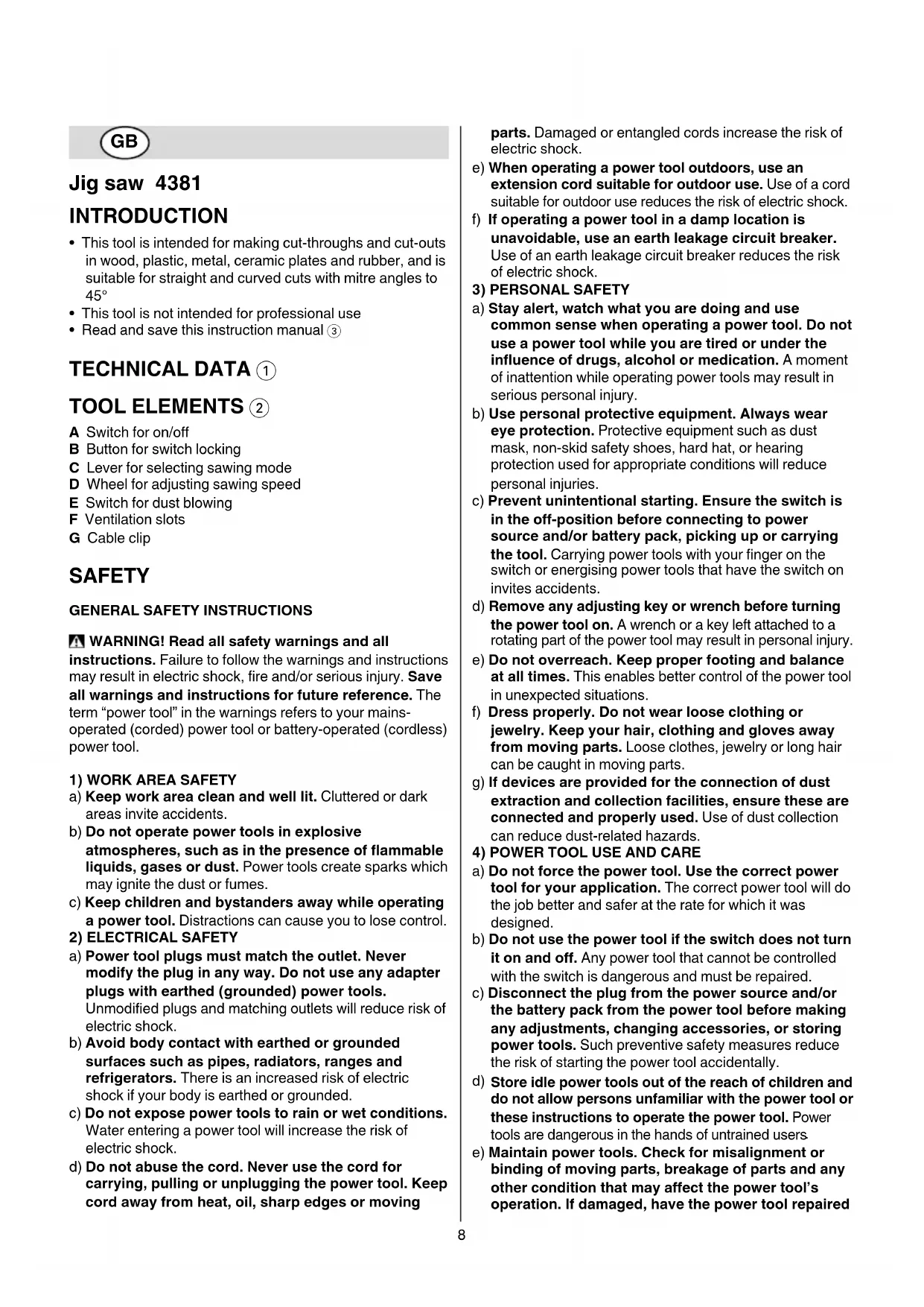 SAFETY GENERAL SAFETY INSTRUCTIONS WARNING! Read all safety warnings and all