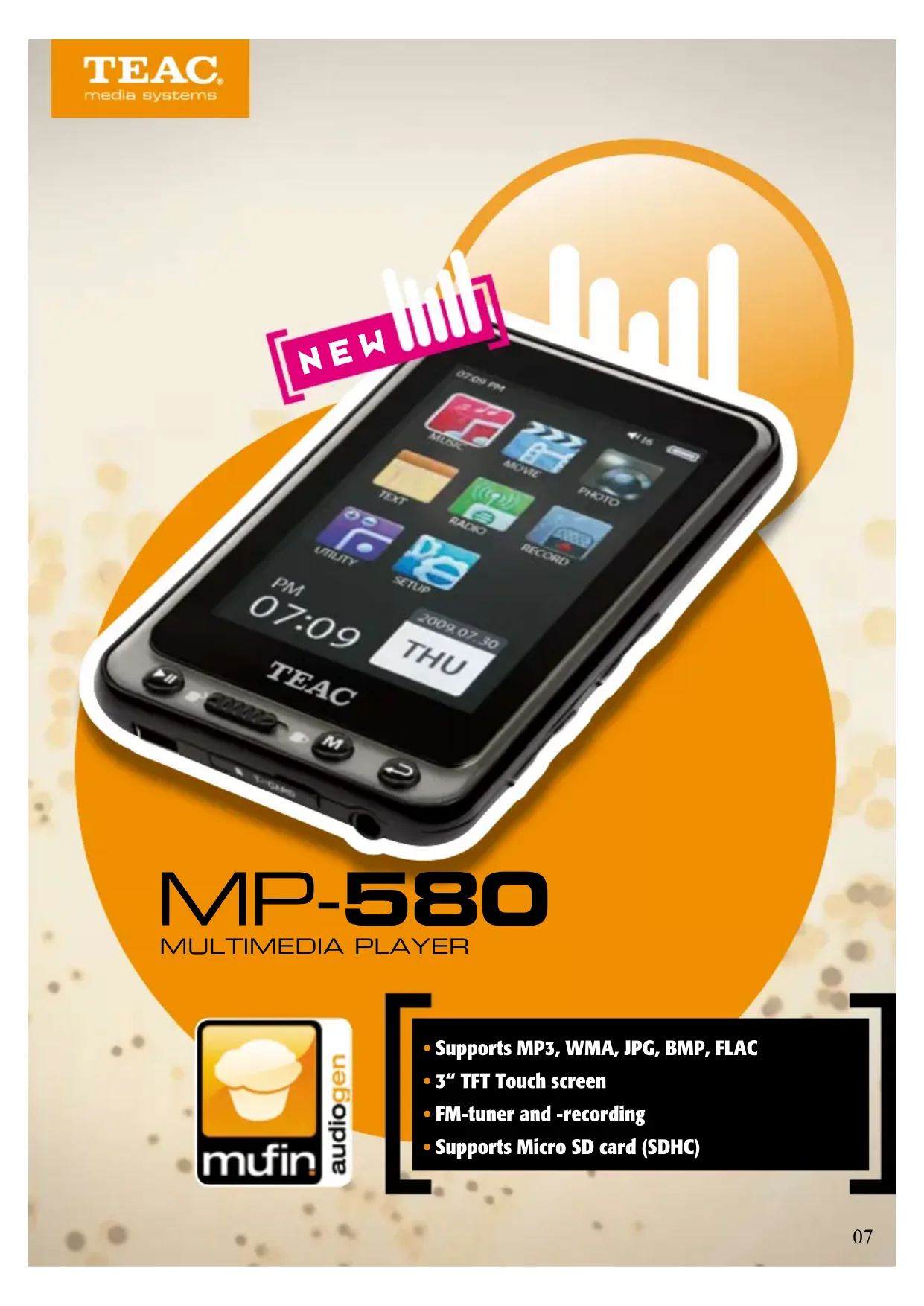 NEw• Supports MP3, WMA, DRM10, MTV, JPG
