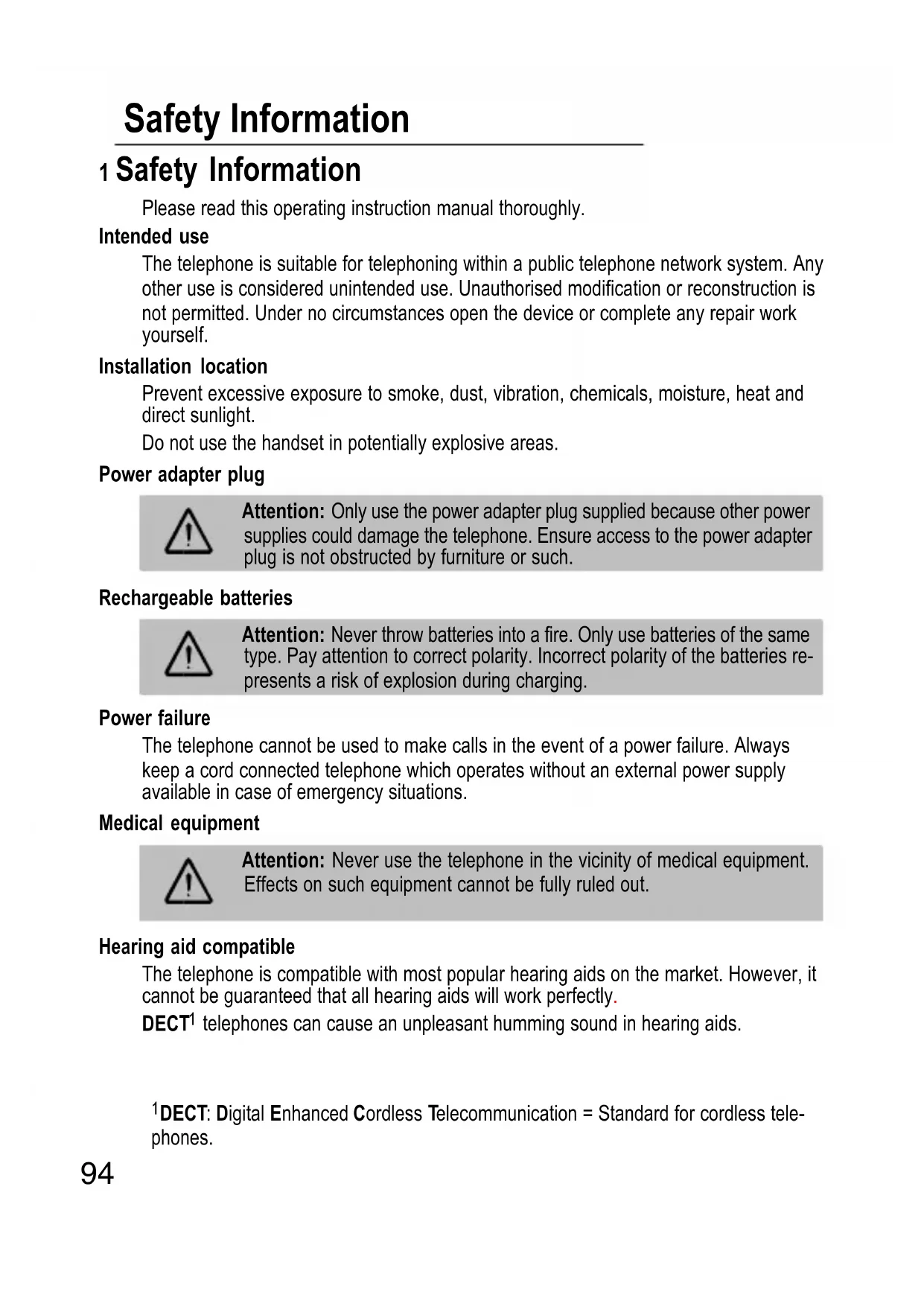 Attention: Never use the telephone in the vicinity of medical equipment. Effects on such equipment cannot be fully ruled out.