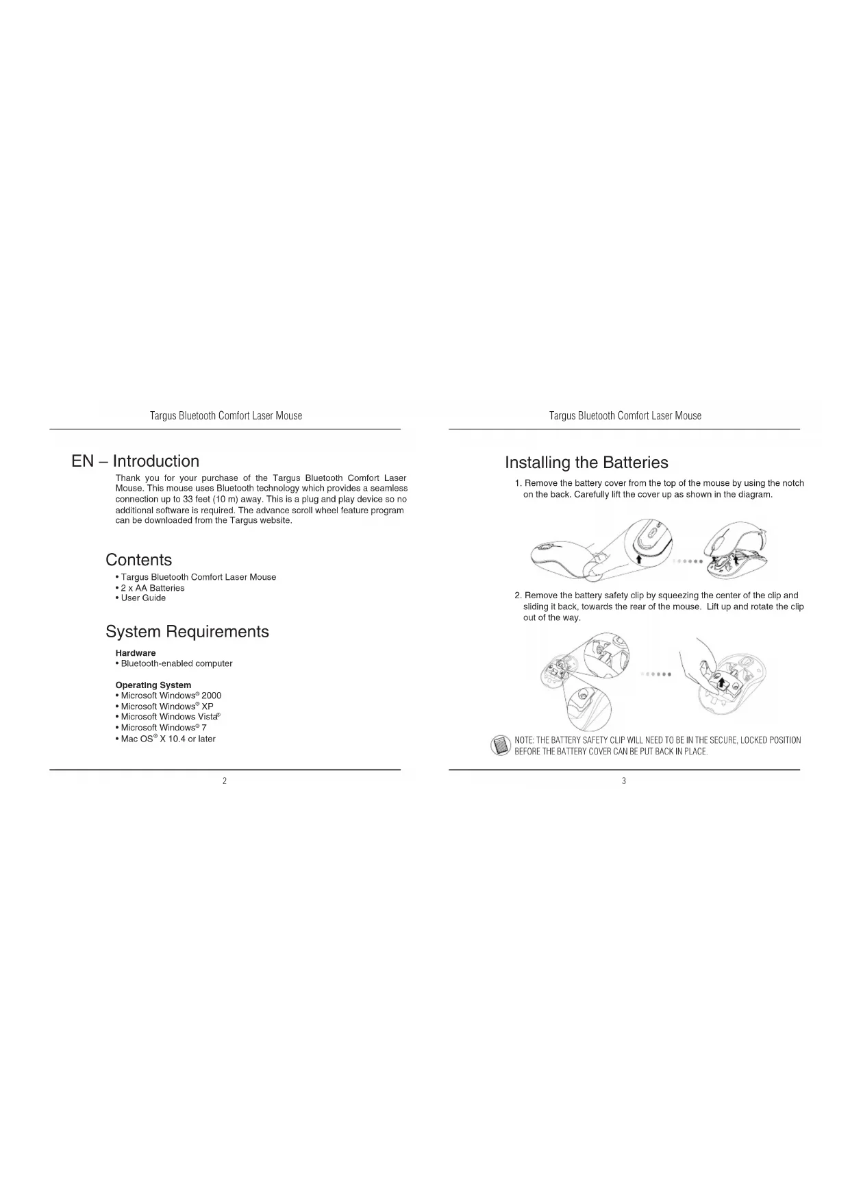 Thank you for your purchase of the Targus Bluetooth Comfort Laser