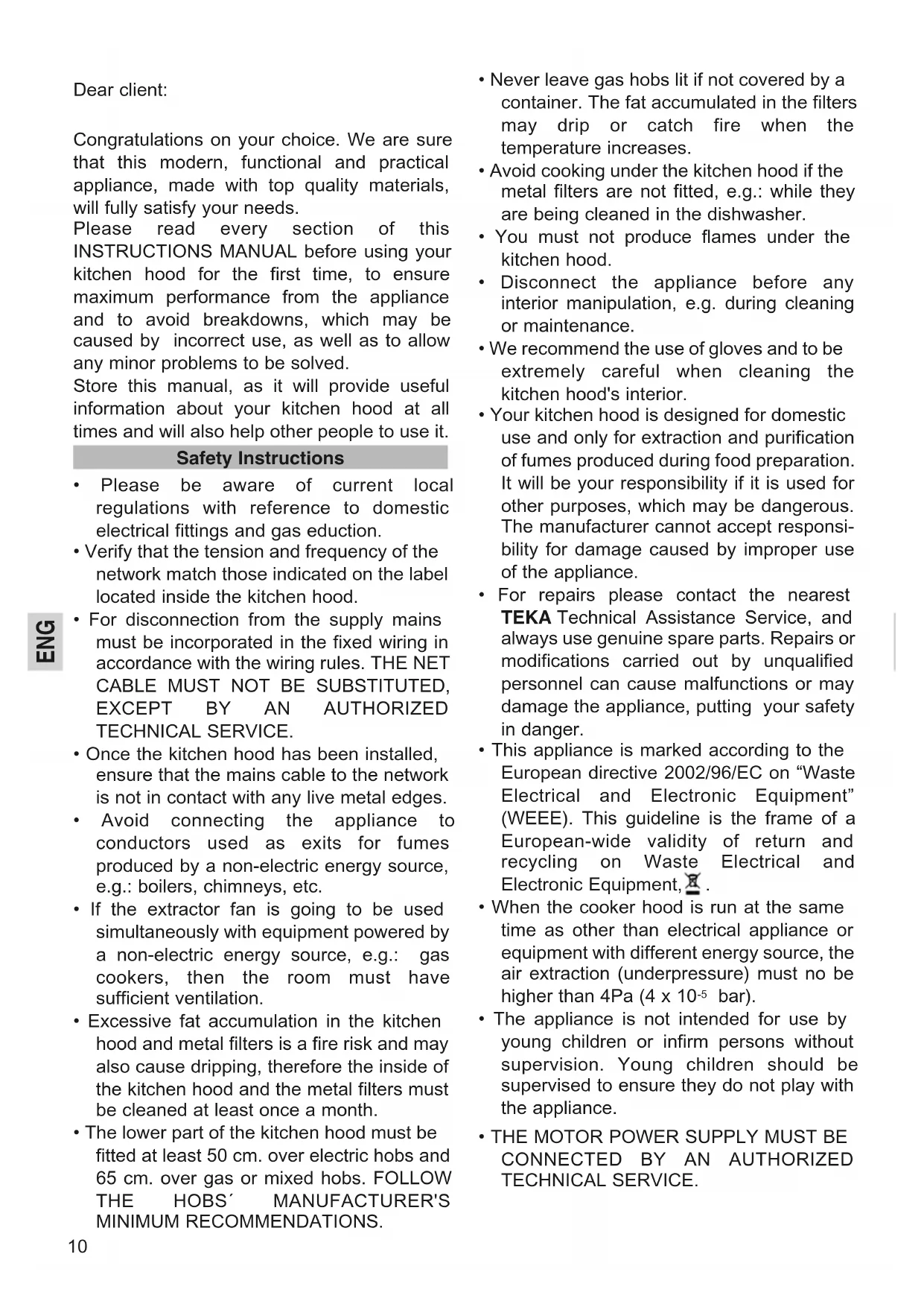 USER MANUAL DH 120 Isla TEKA
