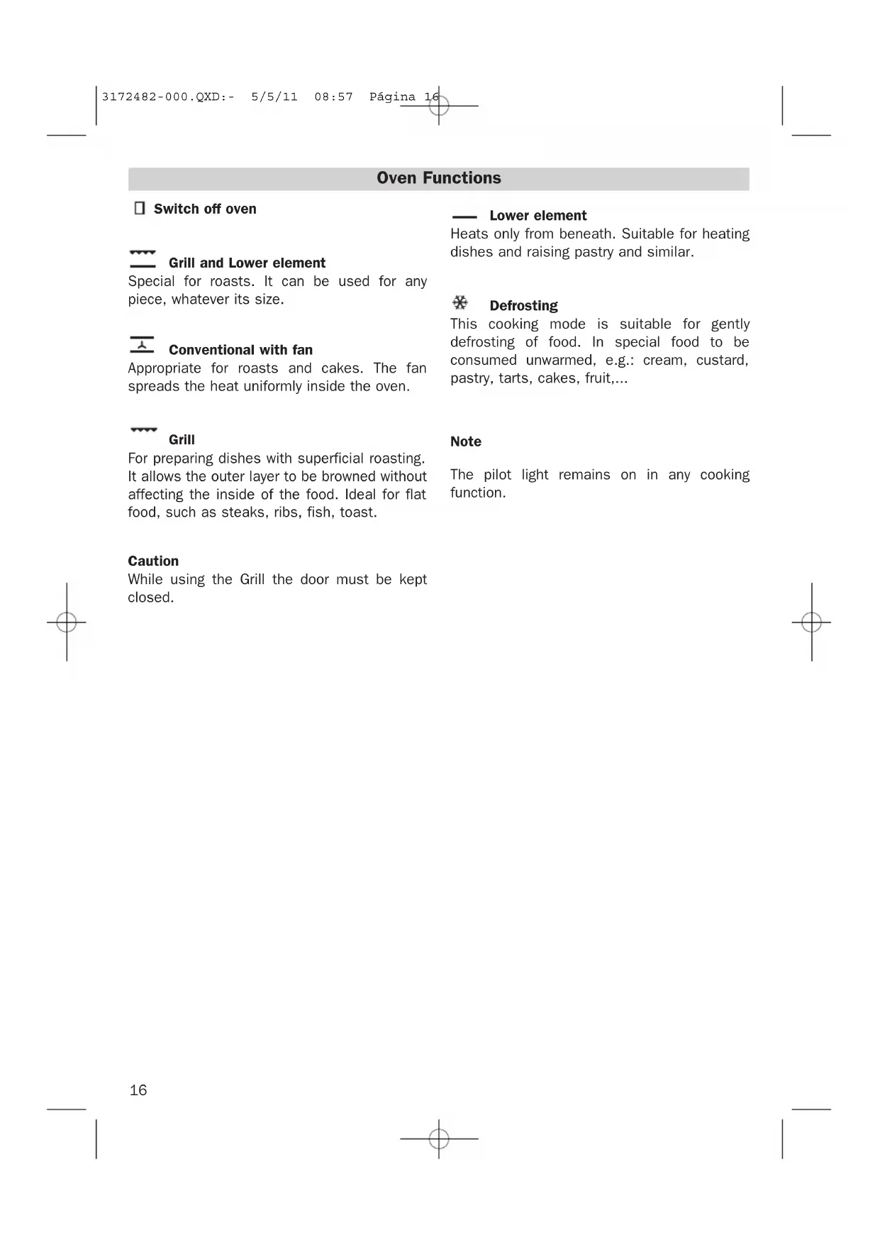 CAUTION After cooking, you will notice that the oven