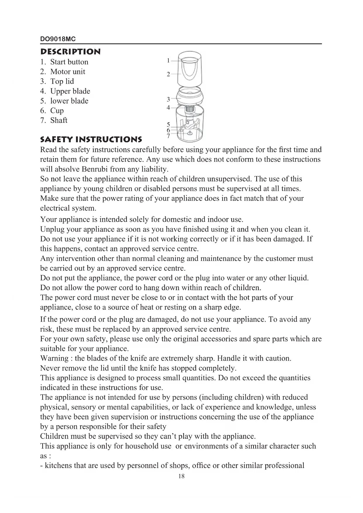 Read the safety instructions carefully before using your appliance for the first time and retain them for future reference. Any use which does not conform to these instructions will absolve Benrubi from any liability.