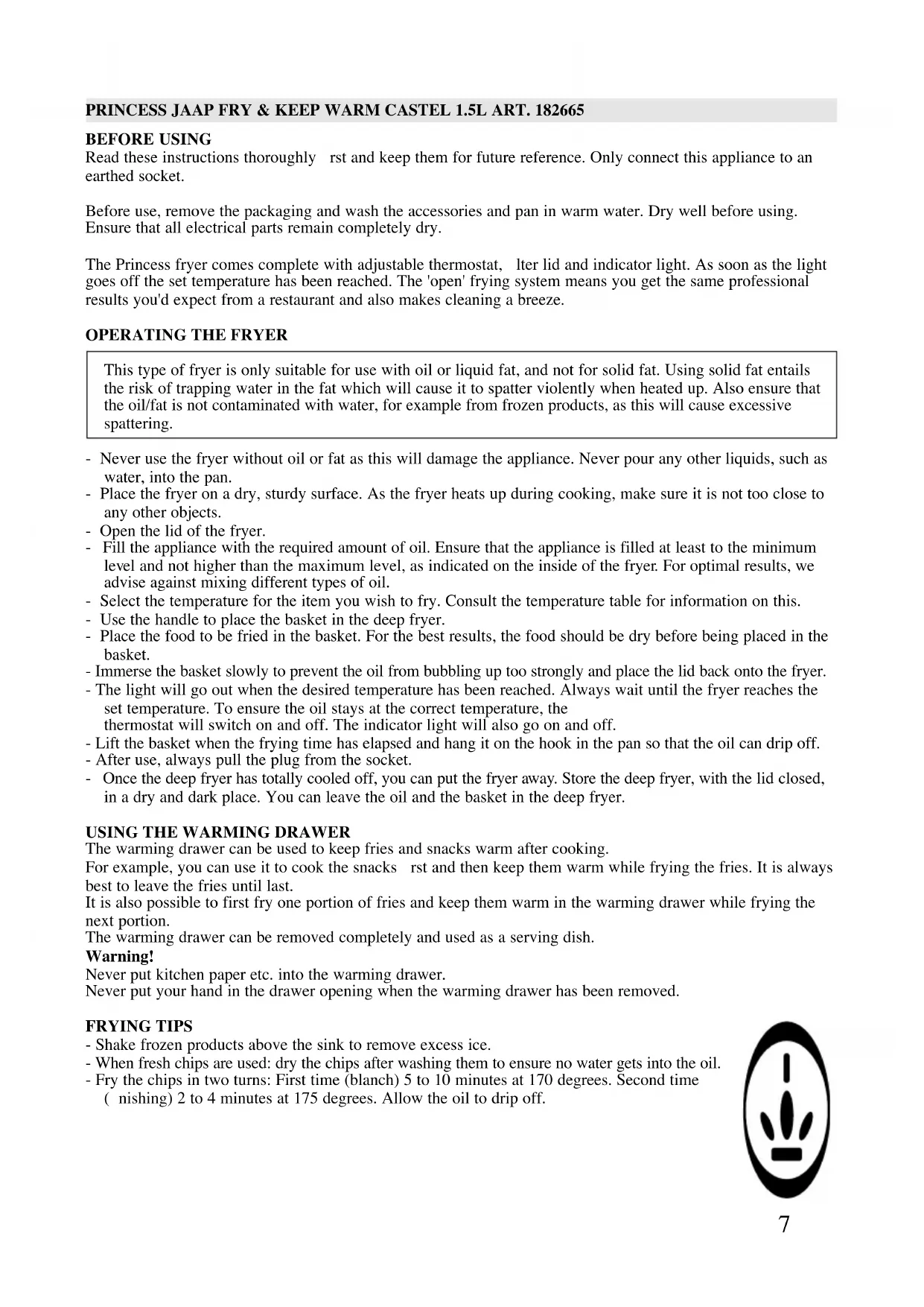 182665 - Deep fryer PRINCESS - Free user manual and instructions