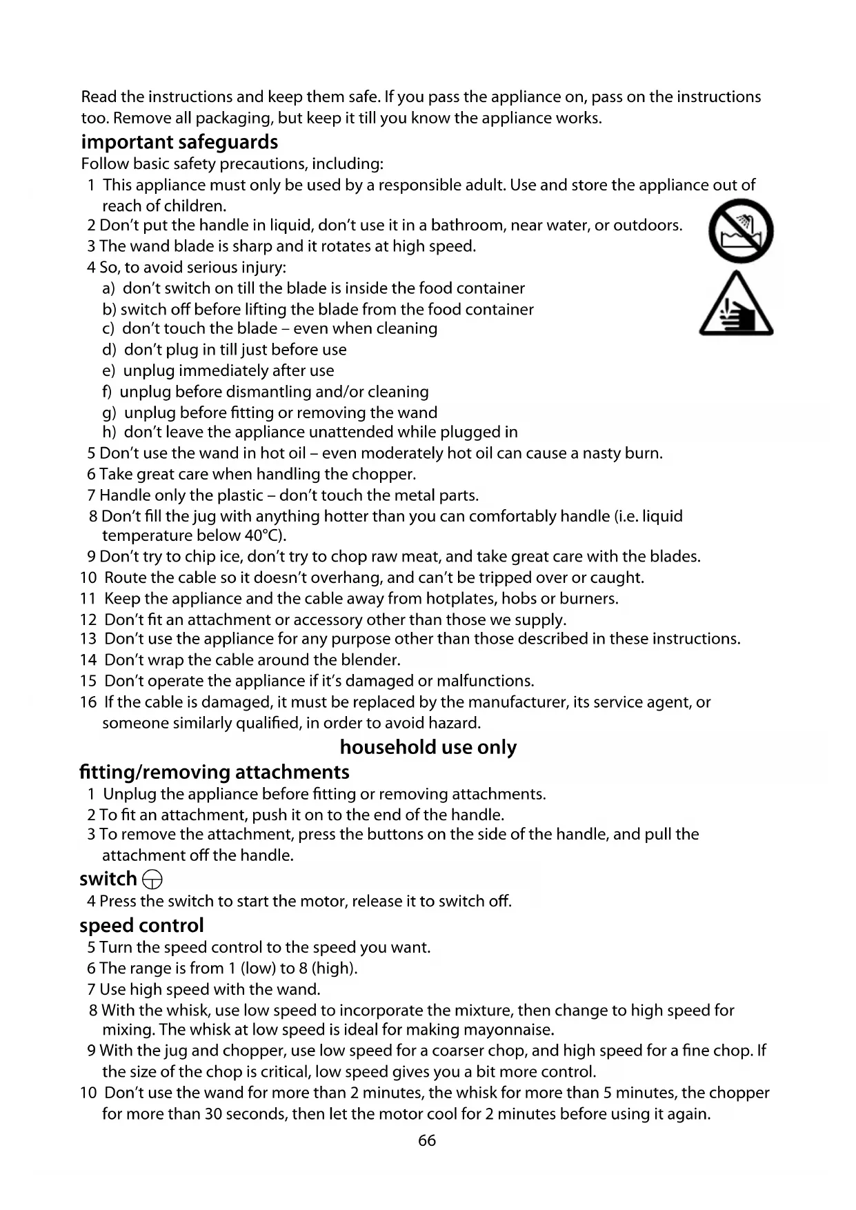 10 Don’t use the wand for more than 2 minutes, the whisk for more than 5 minutes, the chopper