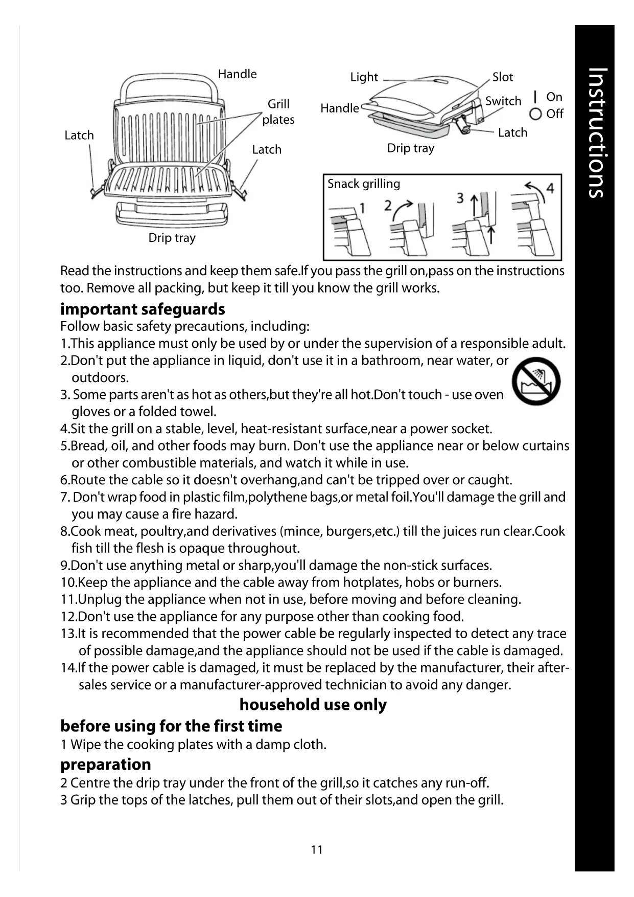 28 Don’t put the grill in water or any other liquid.