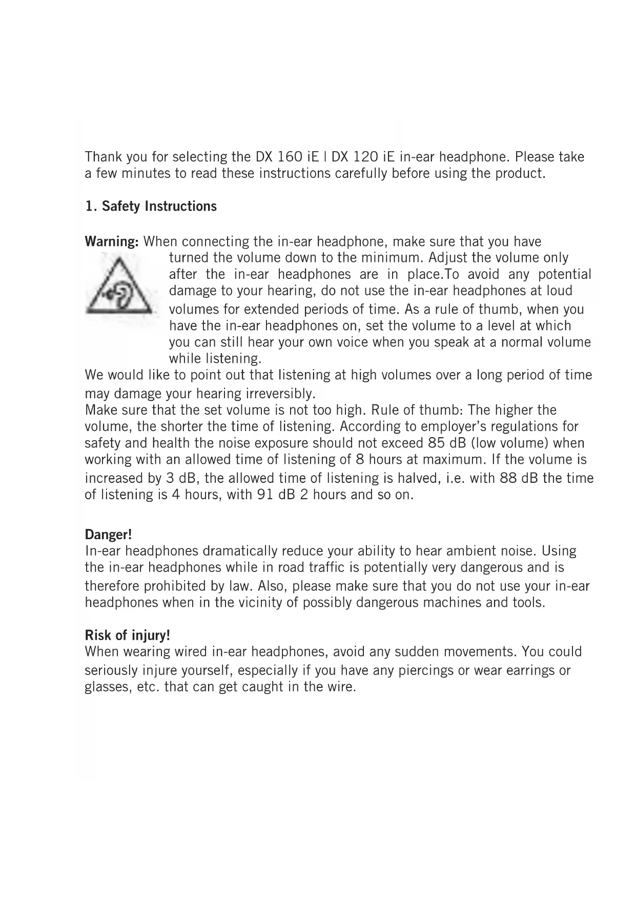 Thank you for selecting the DX 160 iE | DX 120 iE in-ear headphone. Please take a few minutes to read these instructions carefully before using the product.