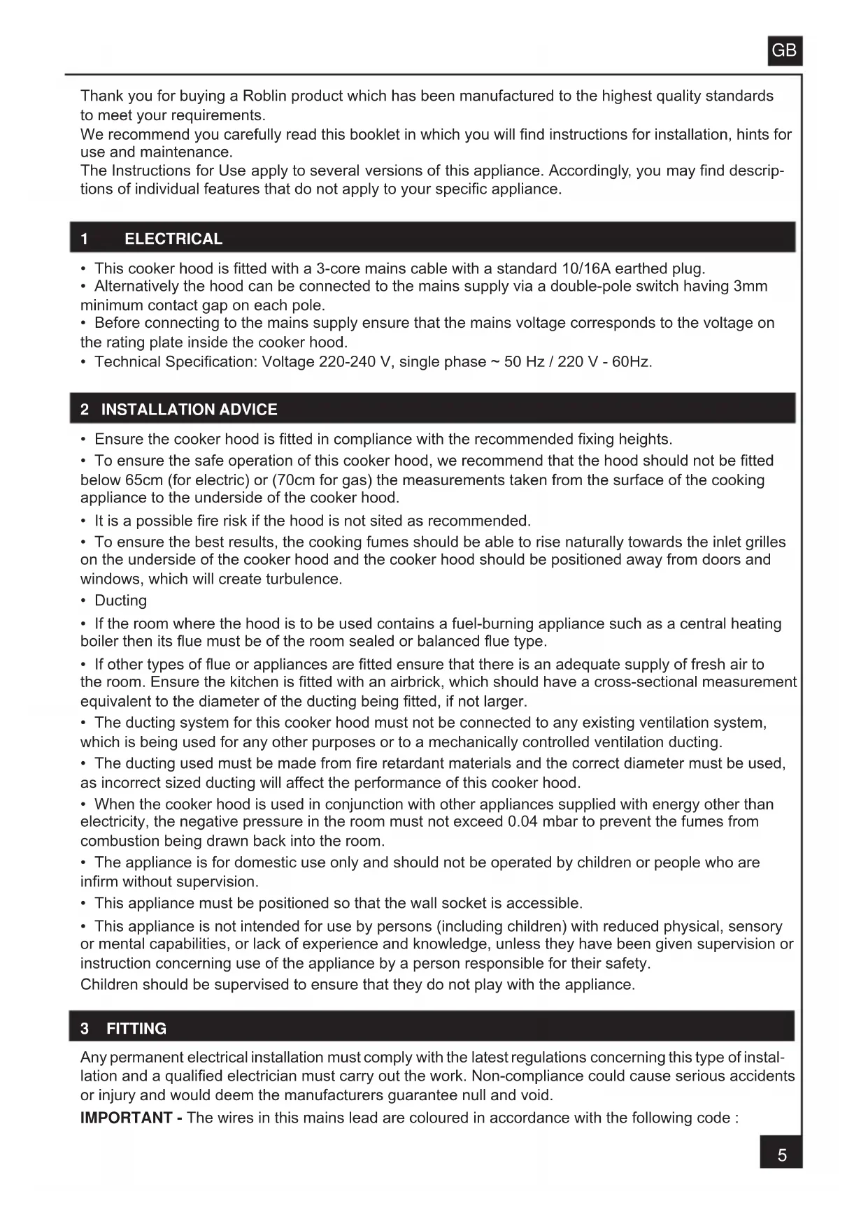 GB Thank you for buying a Roblin product which has been manufactured to the highest quality standards