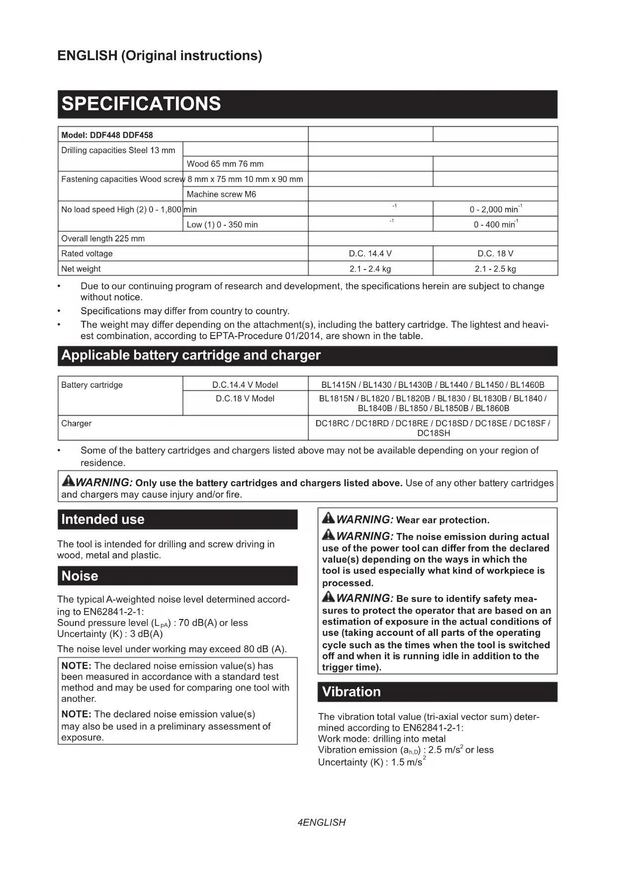 DDF458 - Drill MAKITA - Free user manual and instructions