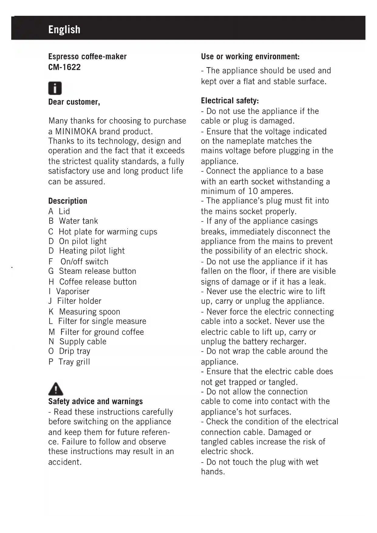 CM1622 - Coffee machine Minimoka - Free user manual and instructions