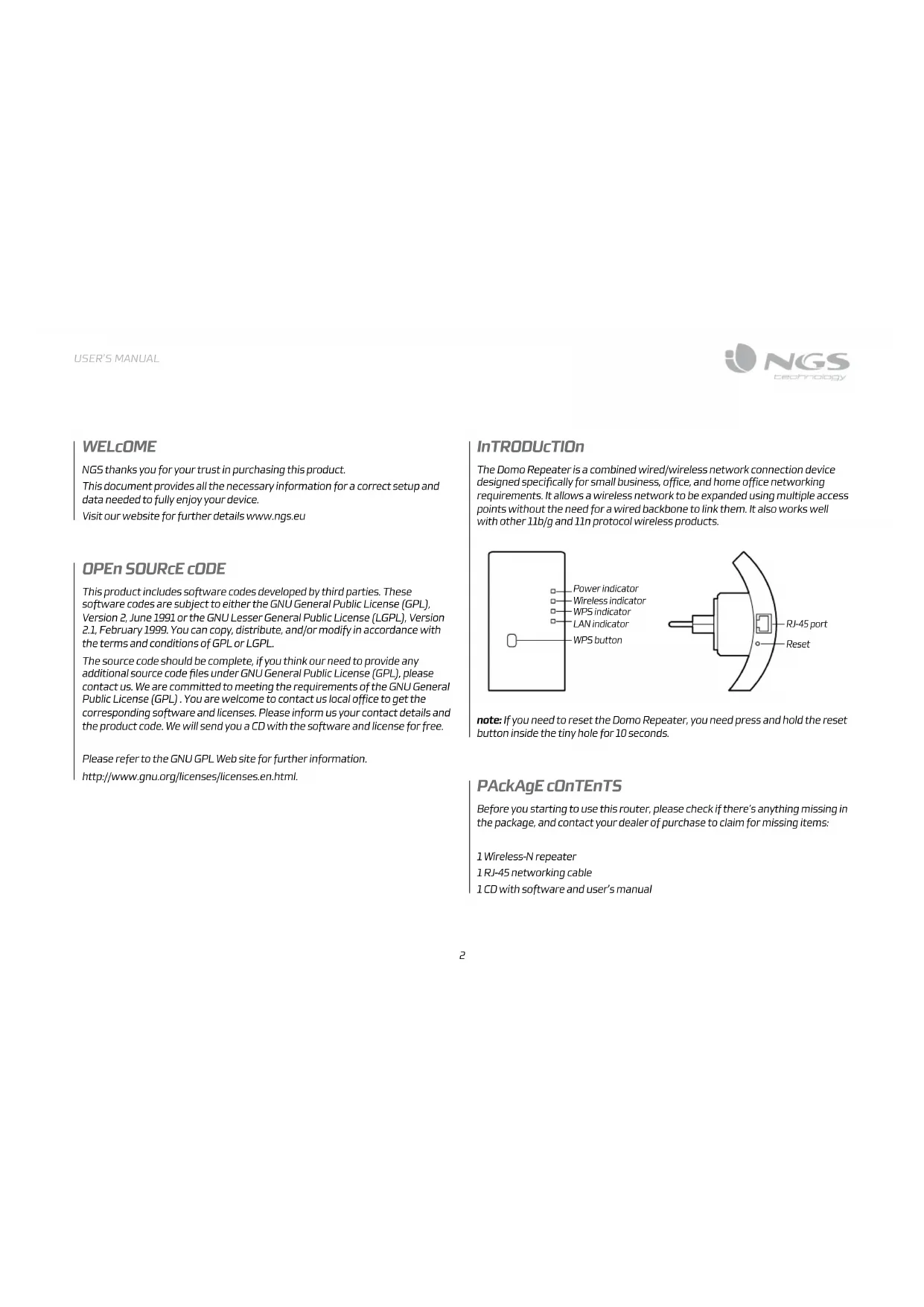 Domo Repeater - Wifi répéteur NGS - Free user manual and instructions