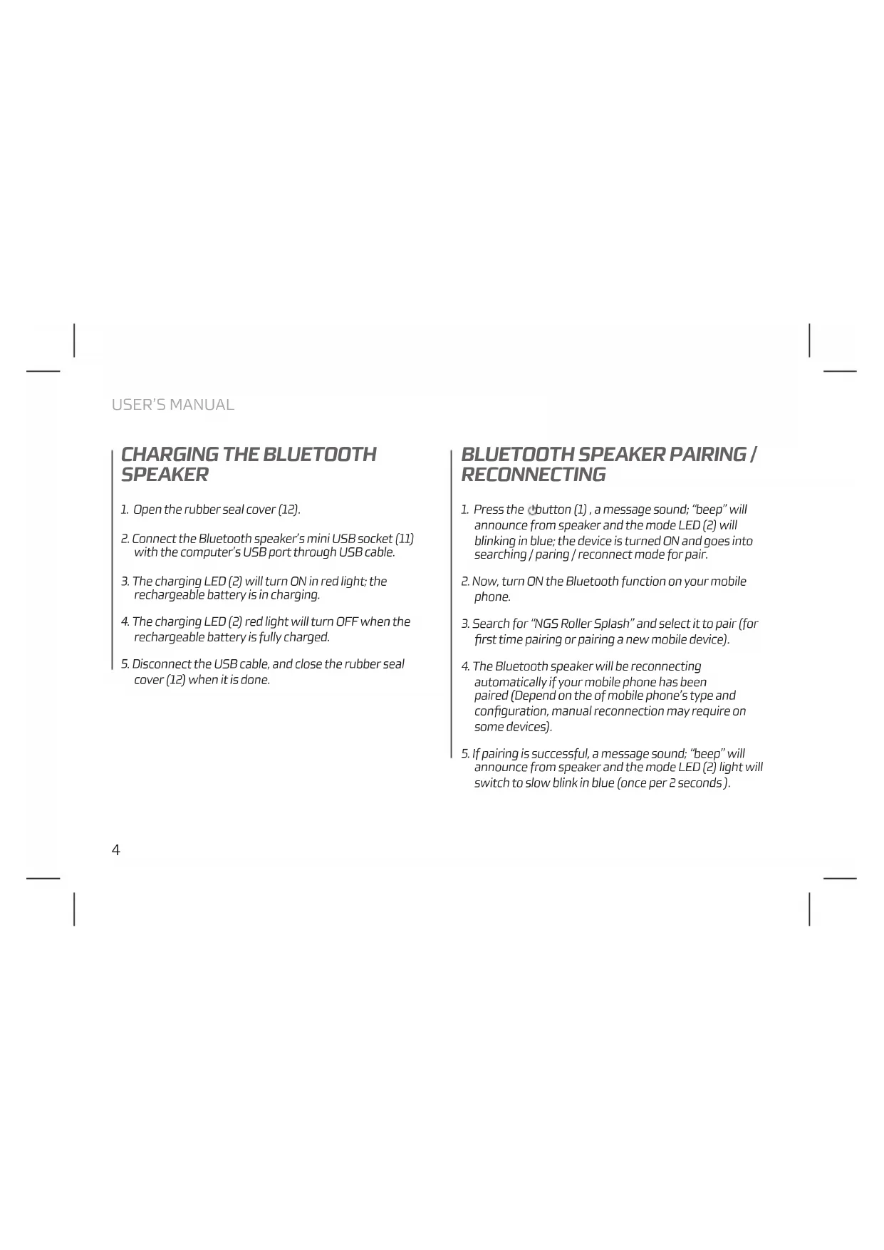 USER MANUAL Roller Splash NGS