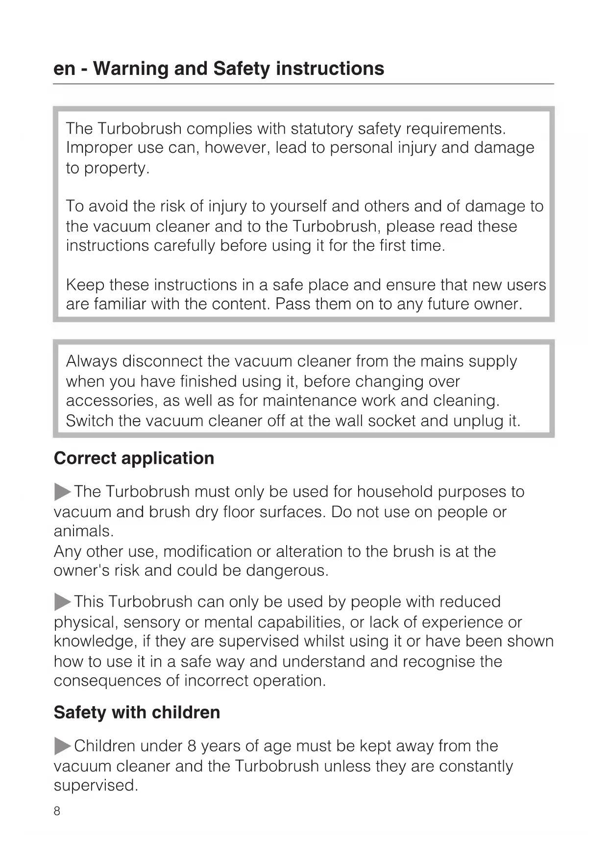 Keep the Turbobrush away from curtains, clothing, etc. as these