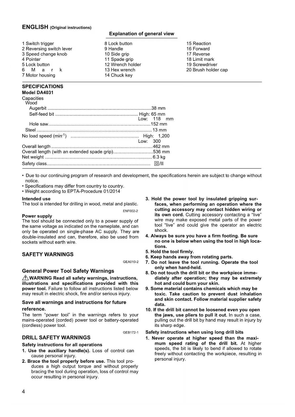 DA4031 - Drill MAKITA - Free user manual and instructions