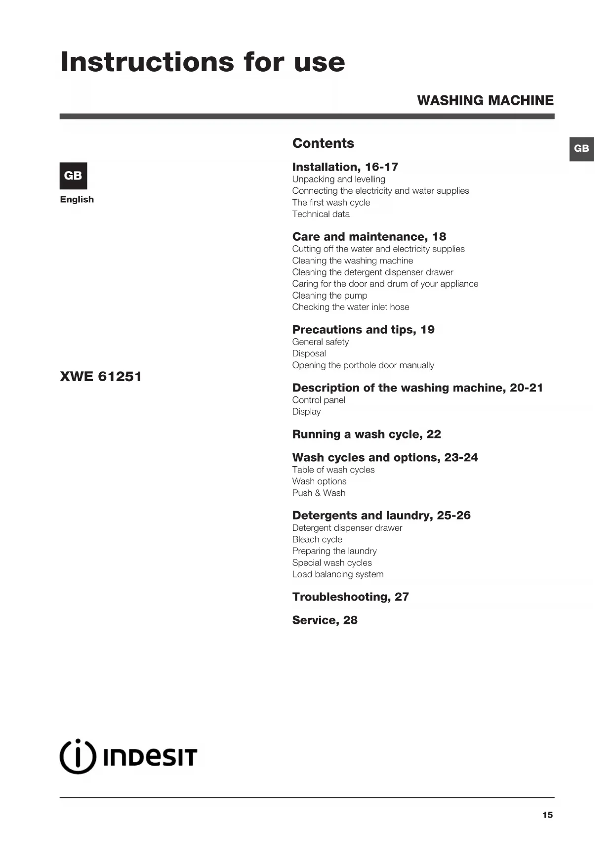 Download the instructions for your Machine à laver in PDF format for free! Find your manual XWE 61251 - INDESIT and take your electronic device back in hand. On this page are published all the documents necessary for the use of your device. XWE 61251 by INDESIT.