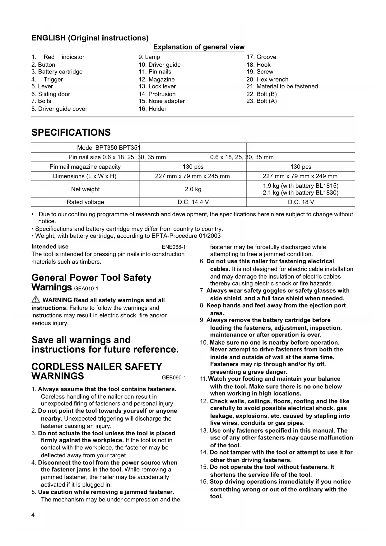 CORDLESS NAILER SAFETY WARNINGS GEB090-1