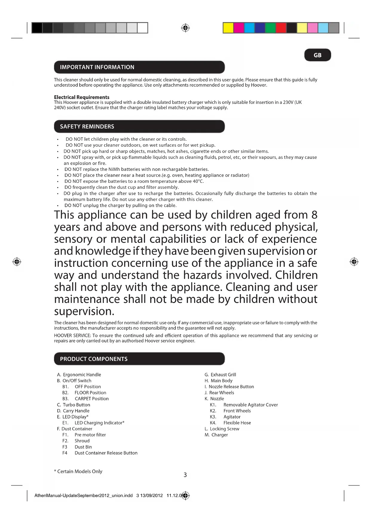 iMPORTaNT iNfORMaTiON SafETy REMiNDERS This cleaner should only be used for normal domestic cleaning, as described in this user guide. Please ensure that this guide is fully