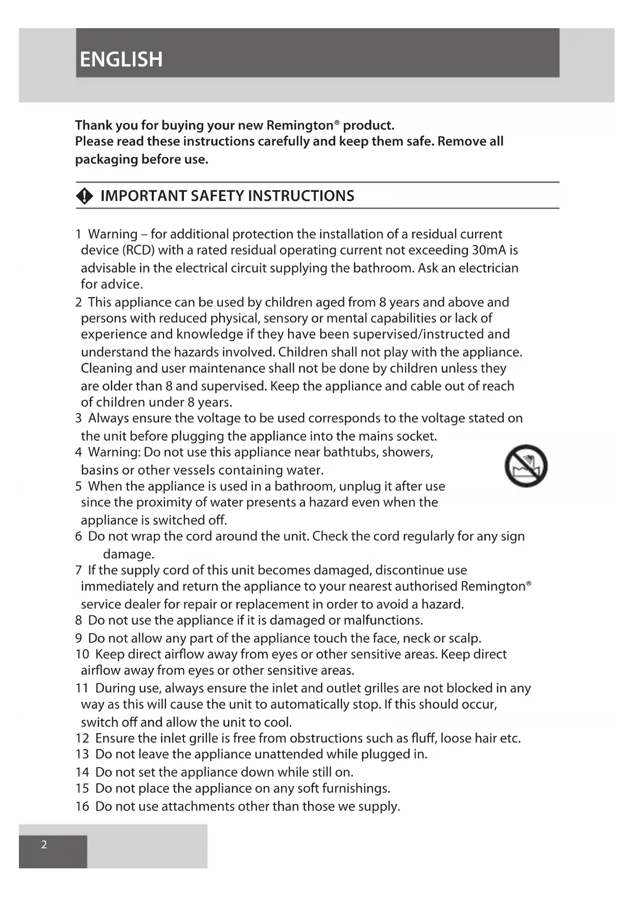 Download the instructions for your Sèche-cheveux in PDF format for free! Find your manual ProAir AC5911 - REMINGTON and take your electronic device back in hand. On this page are published all the documents necessary for the use of your device. ProAir AC5911 by REMINGTON.