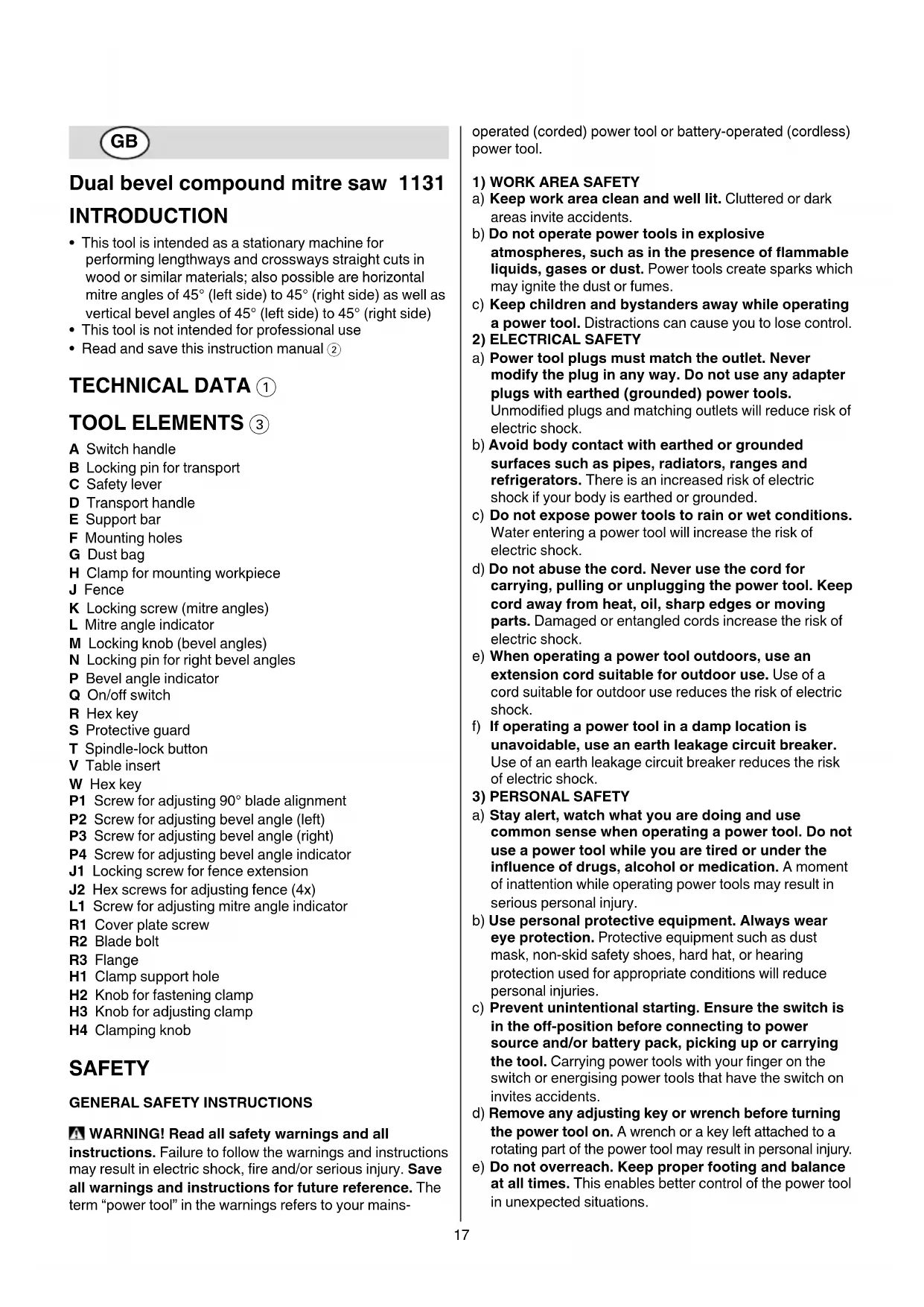 SAFETY GENERAL SAFETY INSTRUCTIONS WARNING! Read all safety warnings and all