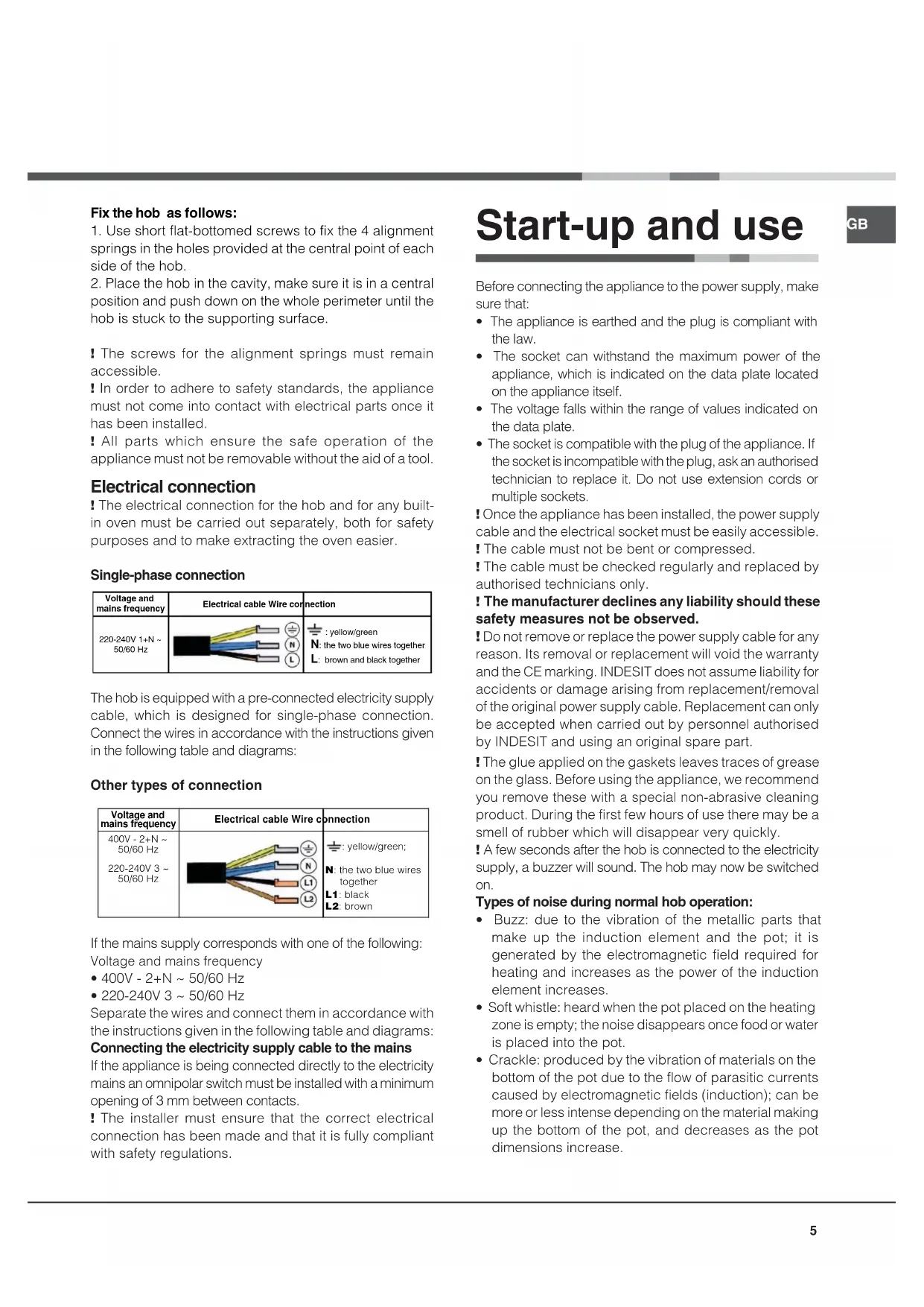 refer to “Start-up and use” section. ! This product complies with the requirements of thelatest European Directive on the limitation of powerconsumption of the standby mode.If no operations are carried out for a period of 2minutes, after the residual heat indicator lights turnoff and the fan stops (if present), the applianceautomatically switches to the .off mode..The appliance resumes the operating mode once theON/OFF button is pressed.! Depending on the number of heaters/cooking zones on the hob the COOKING ZONE SELECTOR BUTTONS may vary between and Installation