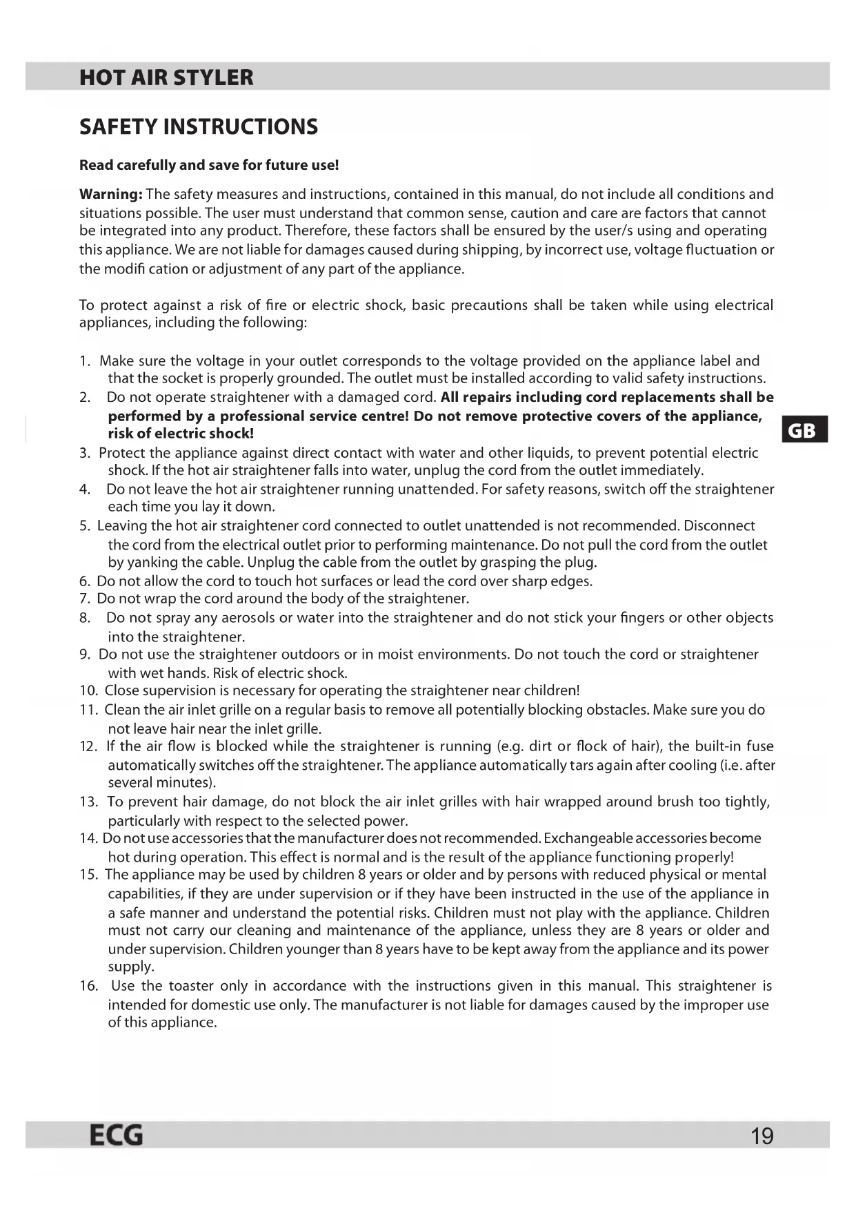Download the instructions for your Hair Straightener in PDF format for free! Find your manual HK 115 - ECG and take your electronic device back in hand. On this page are published all the documents necessary for the use of your device. HK 115 by ECG.
